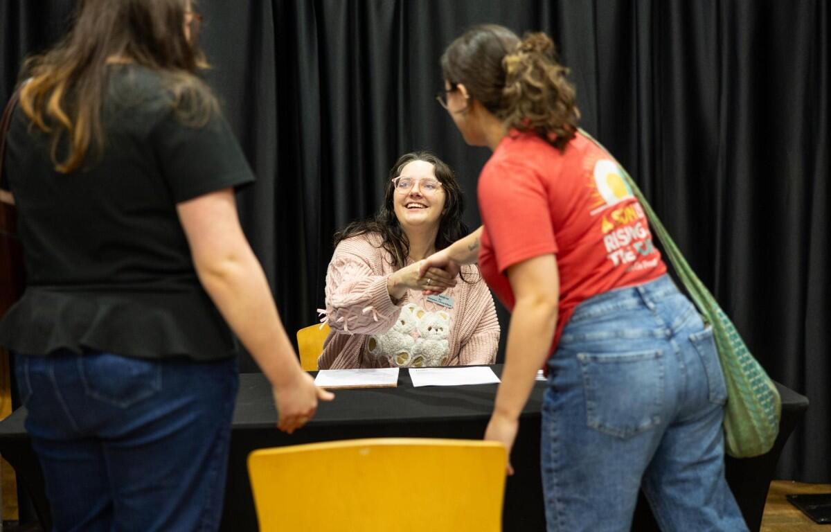 “FSL students have different sensory needs and can be reluctant to talk with people they don’t know, so the Reverse Career Fair creates an environment where they’re more comfortable,” said Colette Parrotte, a career readiness coach with the CSC. “They can come in, get situated at a station, and have their resumes and business cards out the way they want. It helps them gather themselves to have their own space and know what to expect.”