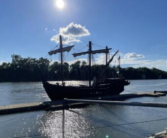 A replica of the famous Christopher Columbus ship the Pinta docked in Clarksville on the Cumberland River Thursday evening.