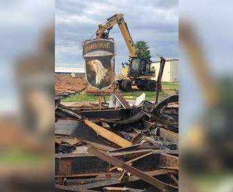A 2,000-lb steel sign was pulled from the scrap pile by local VFW members.