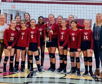 The Clarksville Christian School middle school volleyball team won the 2020 TNCAA Conference Championship.