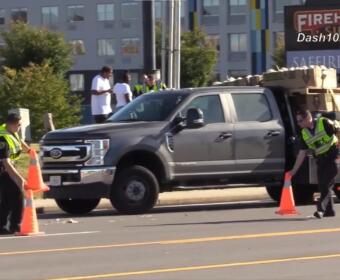 A 52-year-old woman, Lavinia Meriwether, was in stable condition this morning after being hit by a pickup truck hauling a trailer full of pumpkins Wednesday afternoon on Wilma Rudolph Boulevard.