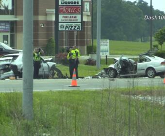 Traffic on Tiny Town Road is blocked by a severe wreck.