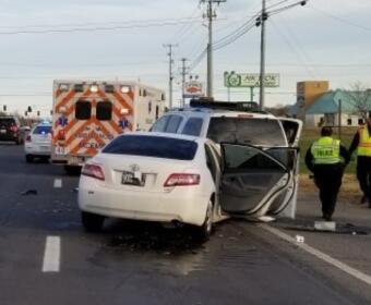 A multi-vehicle crash has tied up eastbound traffic on Madison Street.