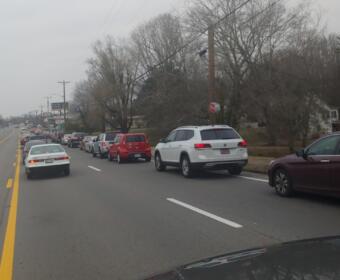 A food distribution event has one lane of Madison Street blocked from just after Crossland Avenue to Liberty Parkway.