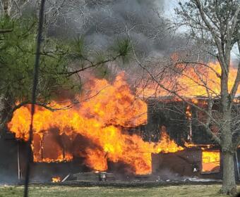 The home is a total loss, as the fire consumed most of the structure.