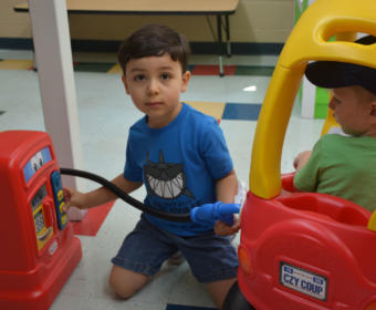 Mini versions of three local businesses are set up at the “Y” to allow children to play and learn.
