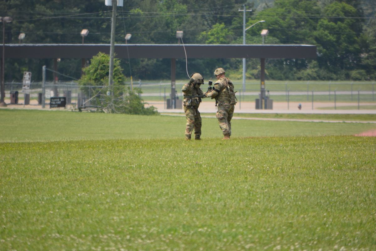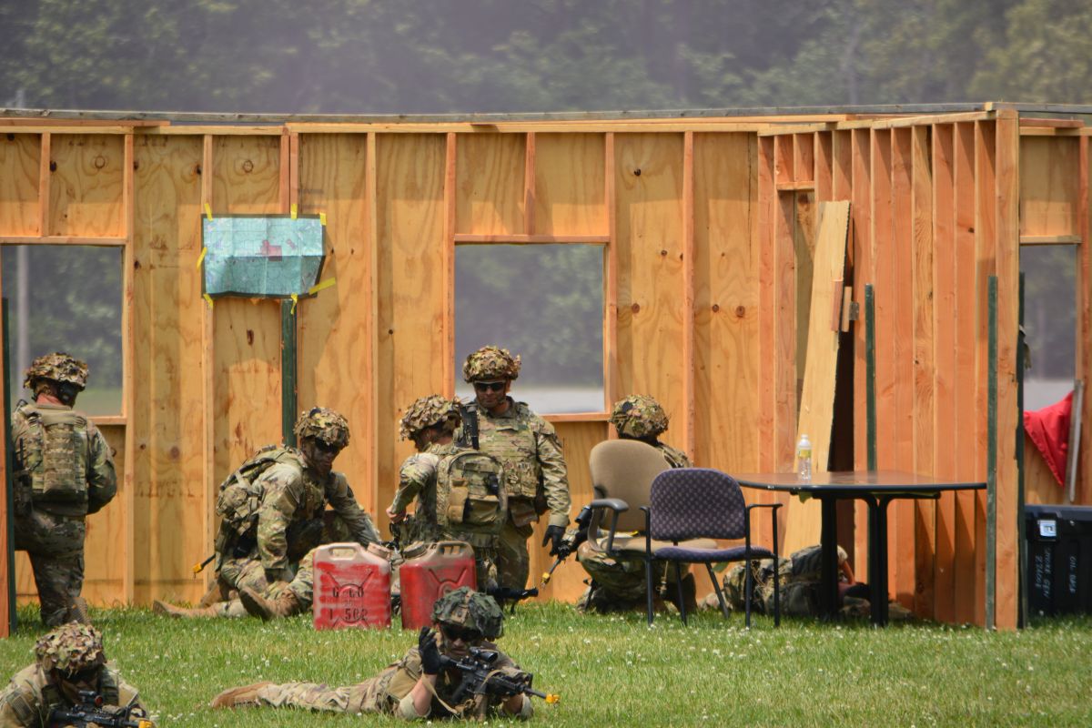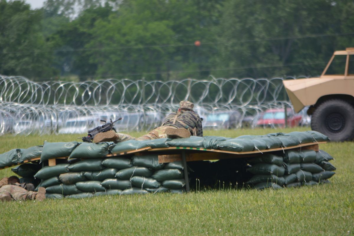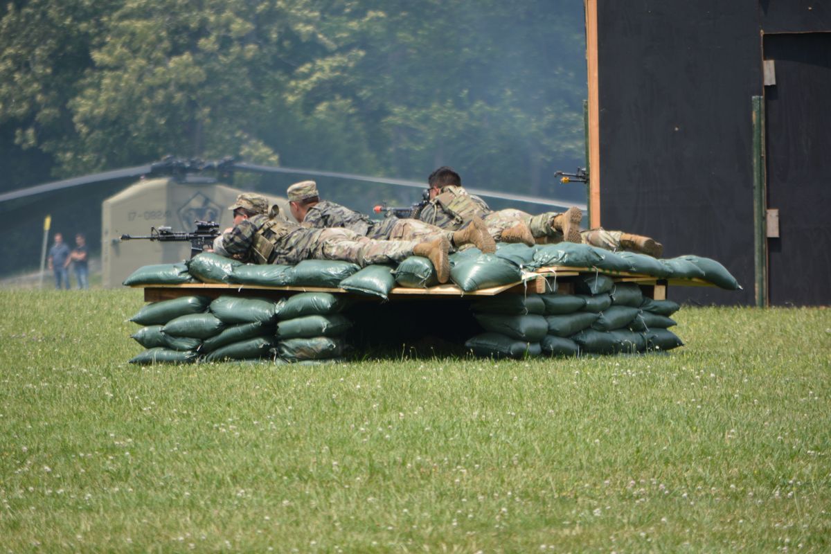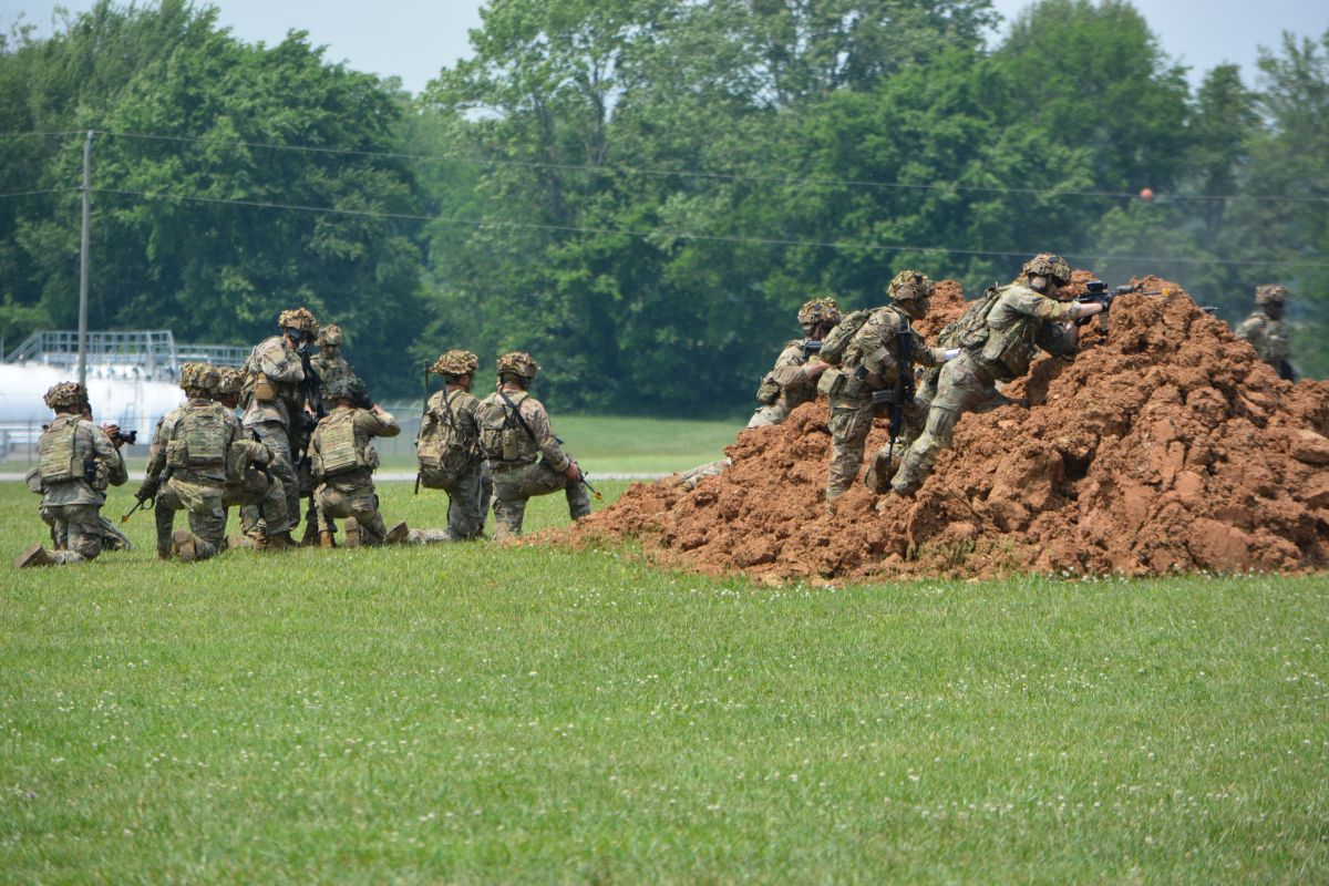 Soldiers participating in a mock battle on Fort Campbell as part of the Air Assault Demonstration during Week of the Eagles on May 21, 2022. (Lee Erwin)