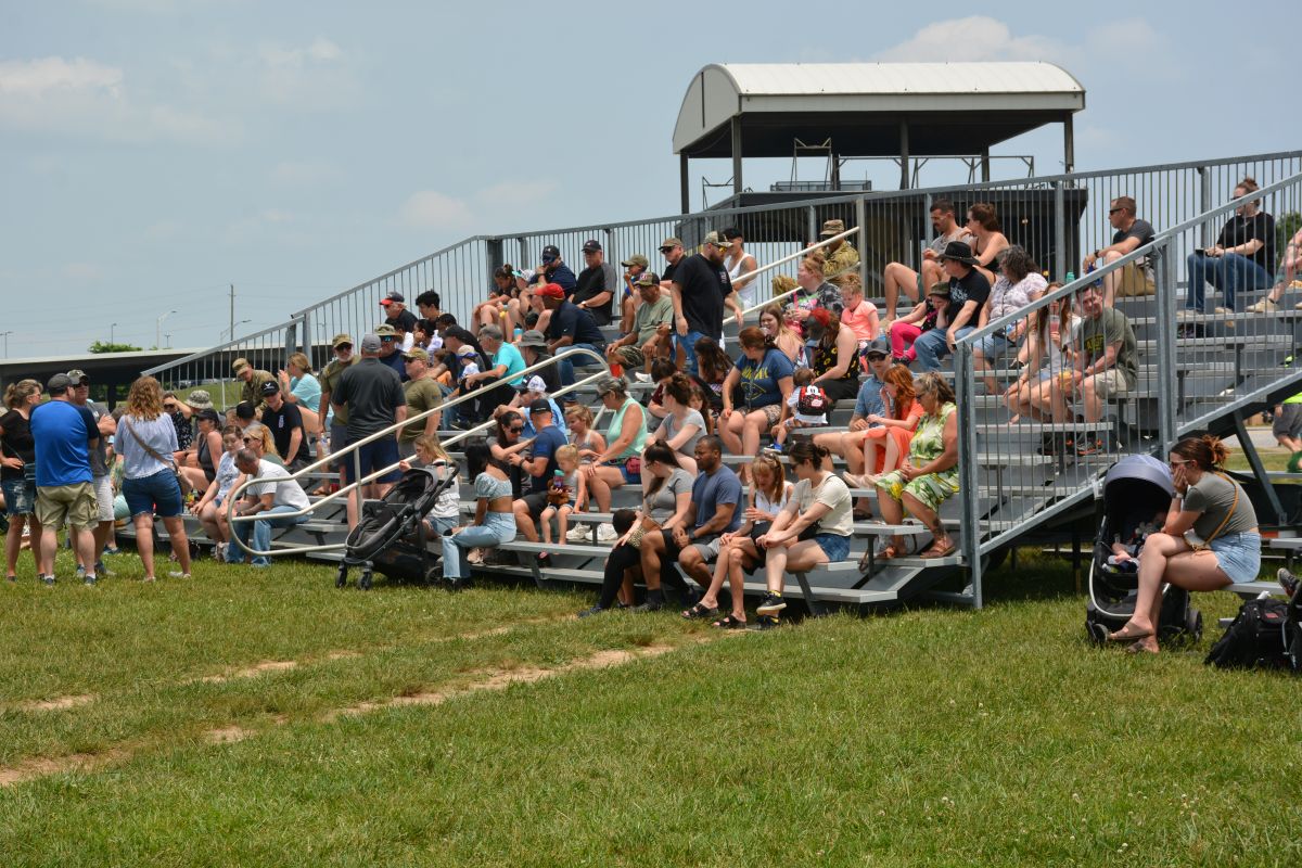 The crowd watches a mock battle on Fort Campbell as part of the Air Assault Demonstration during Week of the Eagles on May 21, 2022. (Lee Erwin)
