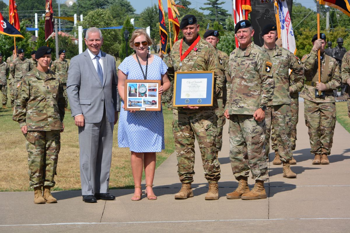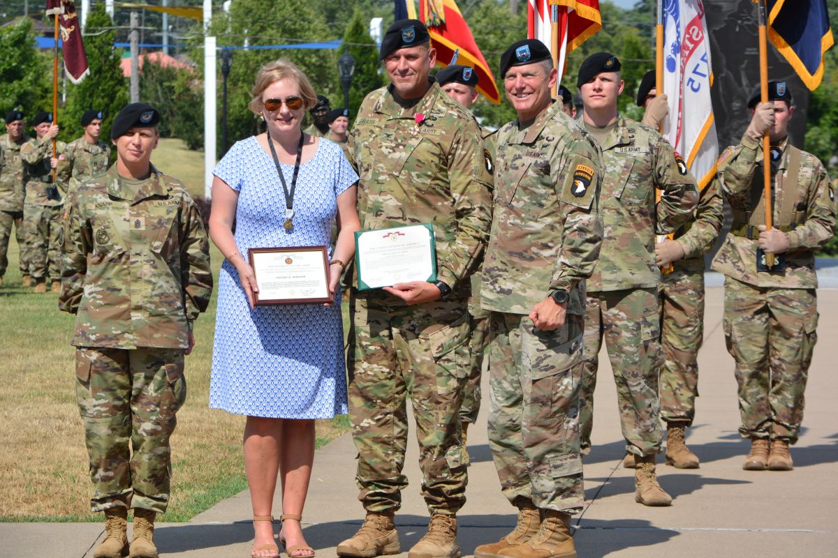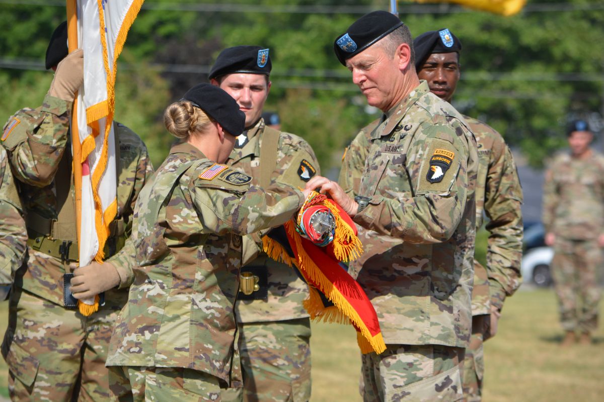Incoming 101st Airborne Division (Air Assault) Deputy Commanding Officer-Support, Colonel Scott Wilkinson, at an Honor Eagle Ceremony at 101st Division Headquarters on, July 5, 2022. (Lee Erwin)