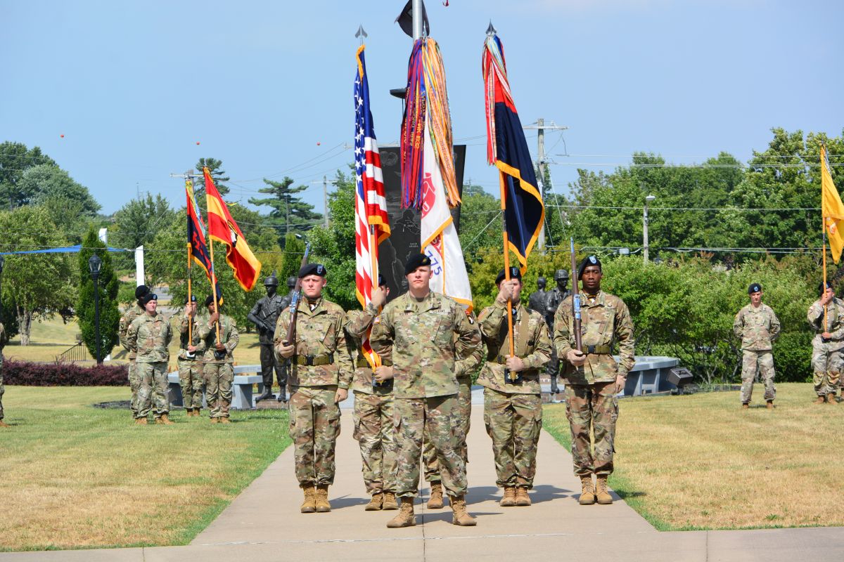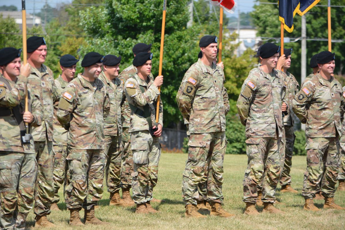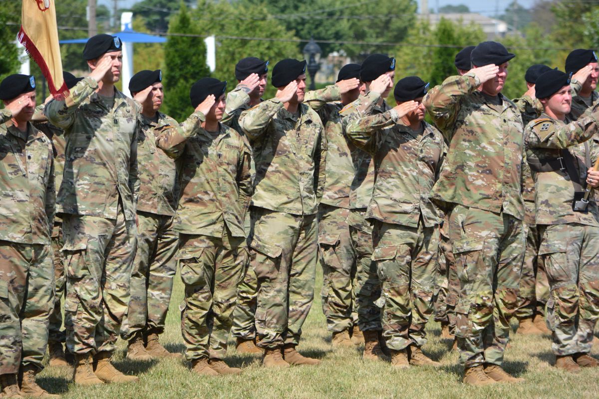 101st soldiers at the 101st Airborne Division (Air Assault) Colors Casing Ceremony at 101st Division Headquarters in preparation for deployment to Europe on, July 5, 2022. (Lee Erwin)