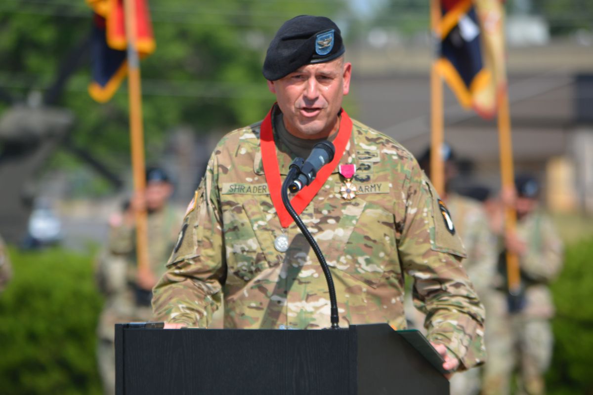 Outgoing 101st Airborne Division (Air Assault) Chief Staff Colonel Stephen Shrader at an Honor Eagle Ceremony at 101st Division Headquarters on, July 5, 2022. (Lee Erwin)