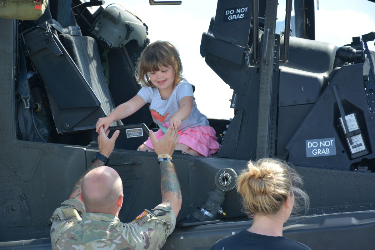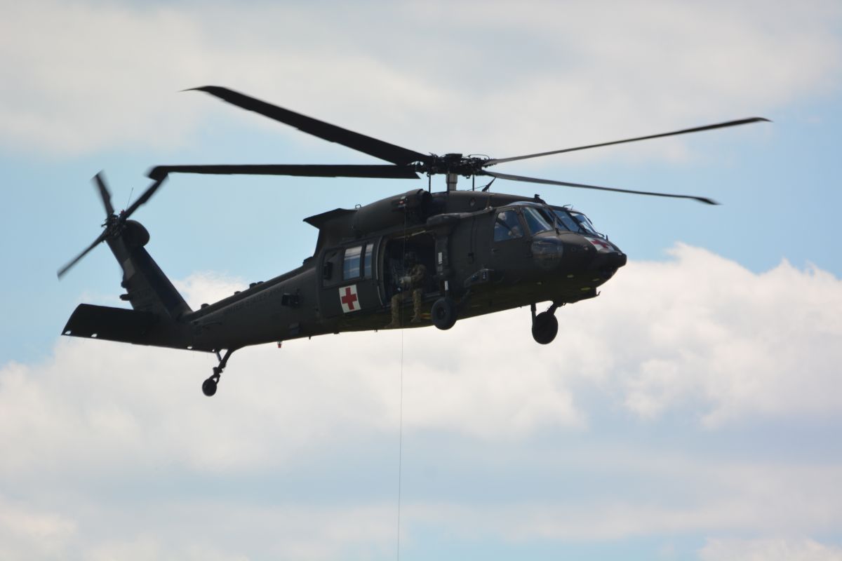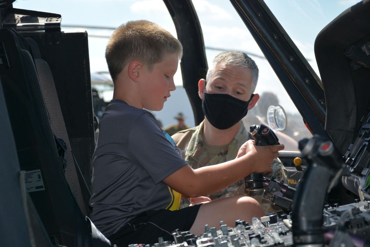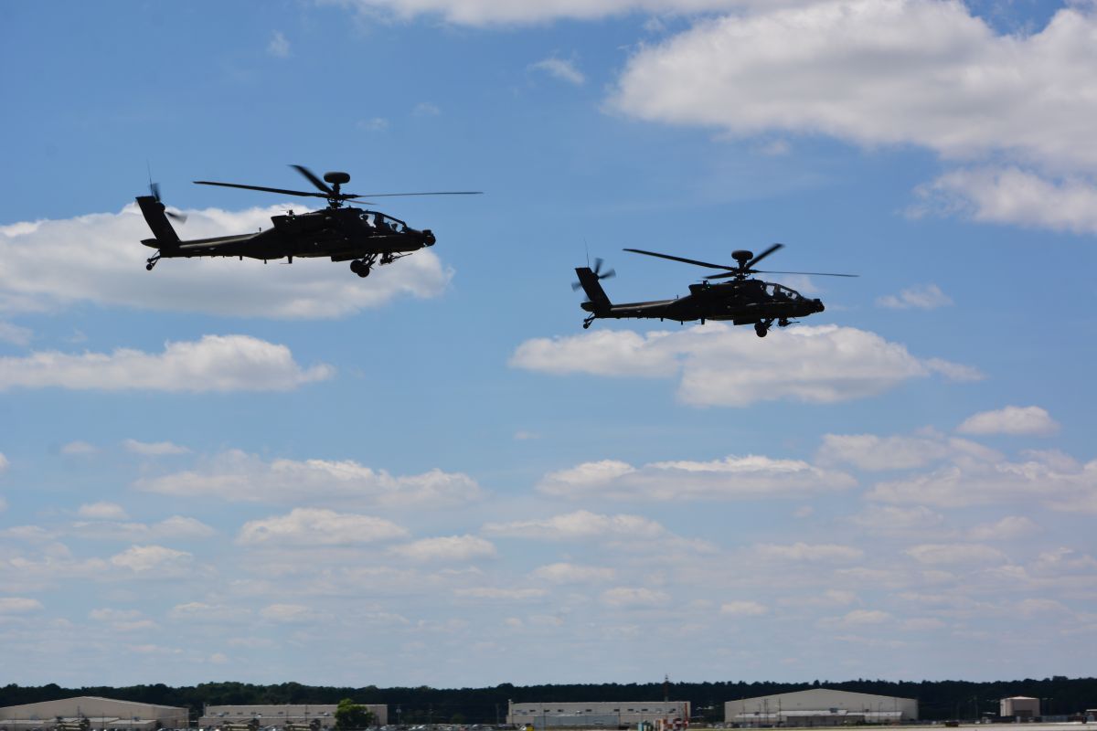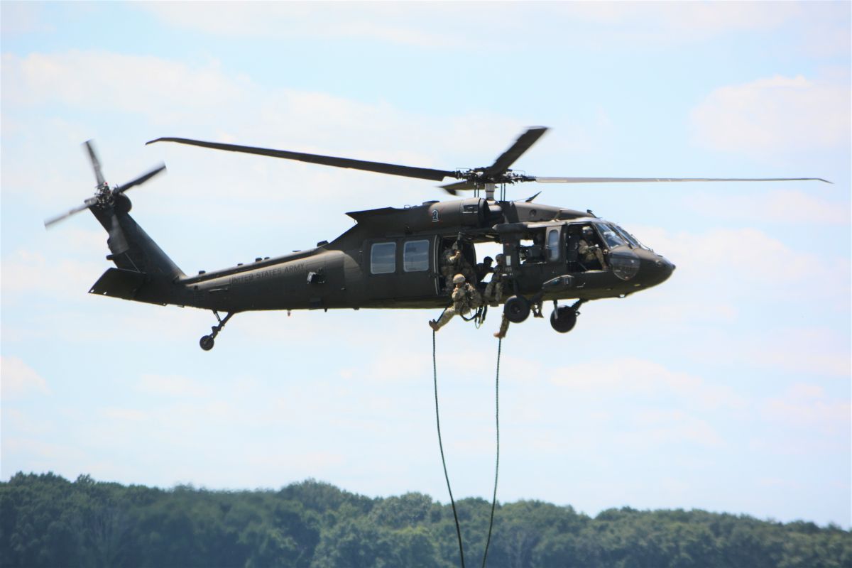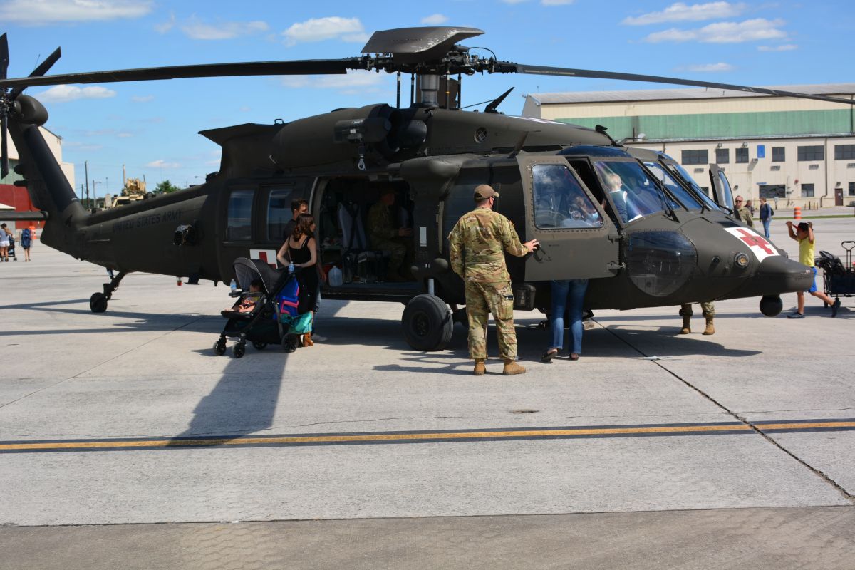 The demonstration showcased UH-60 Black Hawk, AH-64 Apache and CH-47 Chinook helicopters, and it also showed how a medevac aircraft can be used to transport a wounded soldier from a battle to safety.