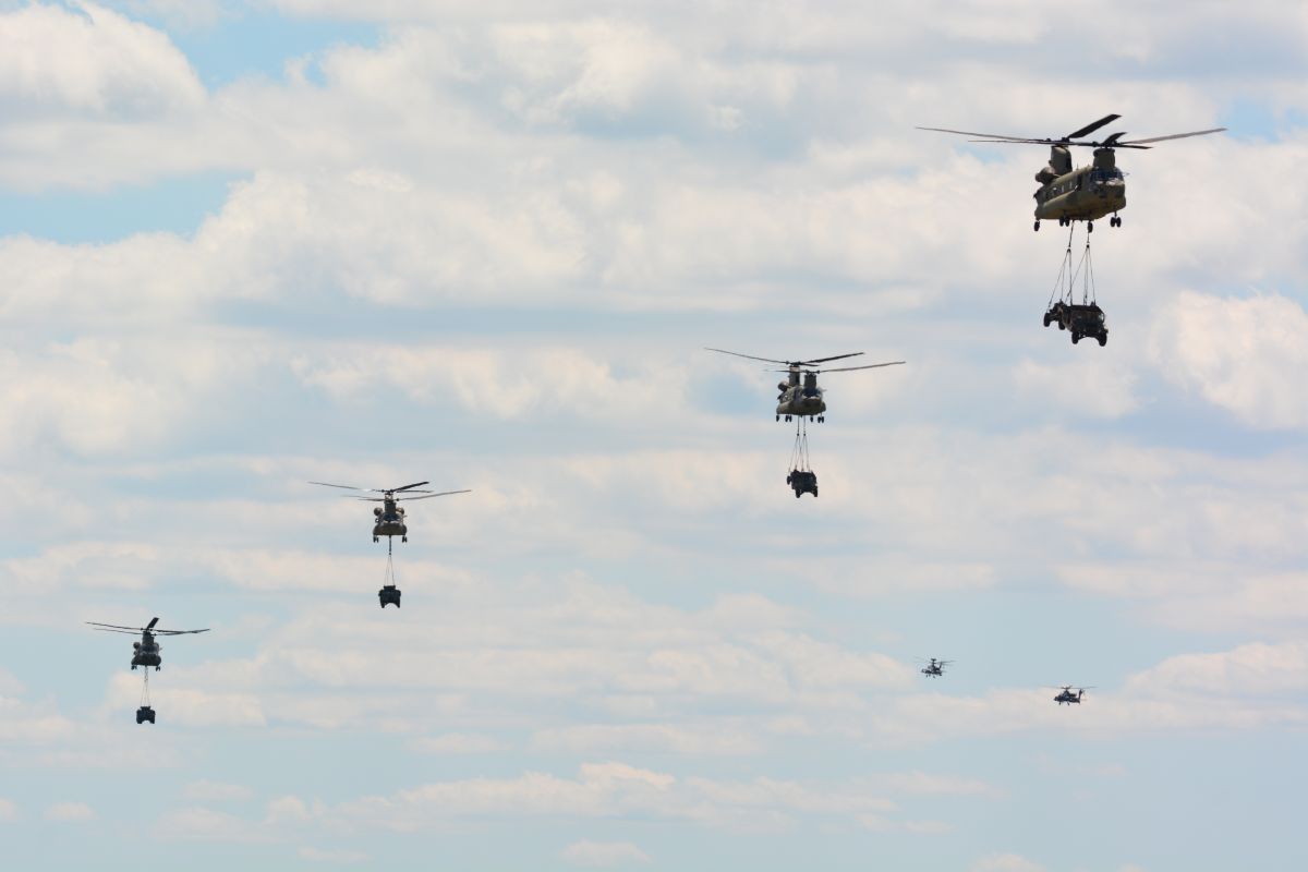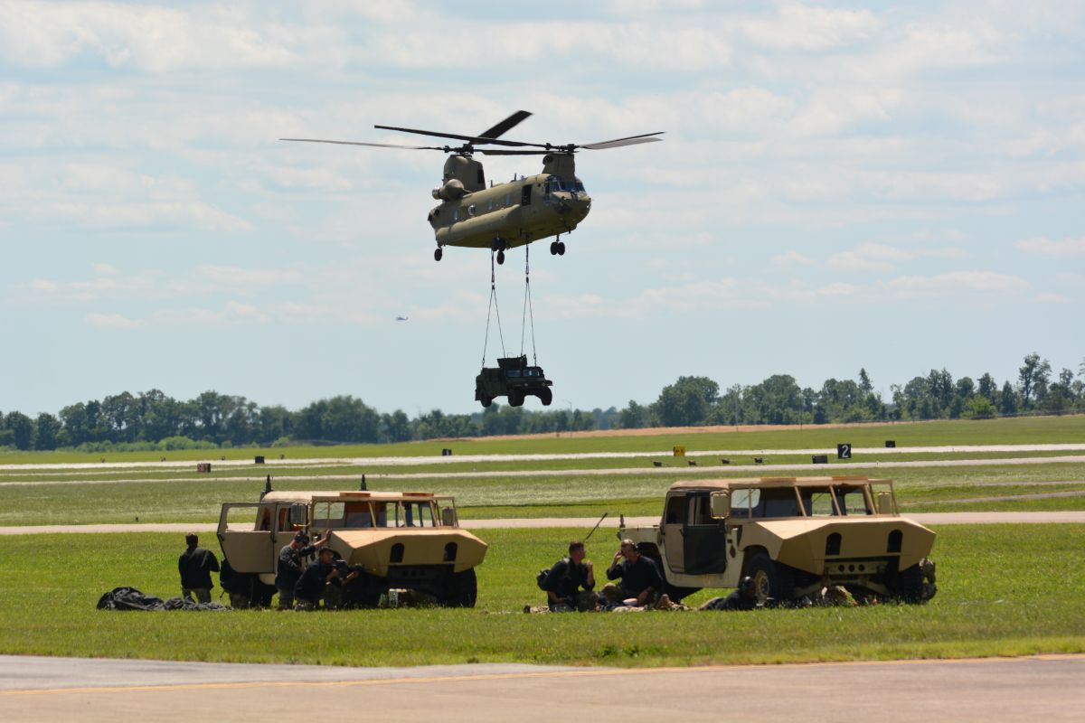 FORT CAMPBELL, KY (CLARKSVILLE NOW) – The 101st Airborne Division showed off its helicopter capabilities with an Air Assault Demonstration, transporting vehicles, artillery and soldiers to the field.