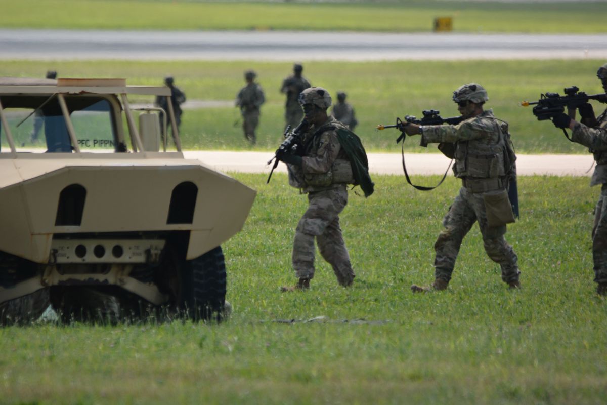 The demonstration was part of Fort Campbell’s Week of the Eagles. First held in 1974, Week of the Eagles honors the legacy and heritage of the 101st and involves both veterans and active duty soldiers. A crowd of several hundred visitors lined Campbell Army Airfield for the demonstration.