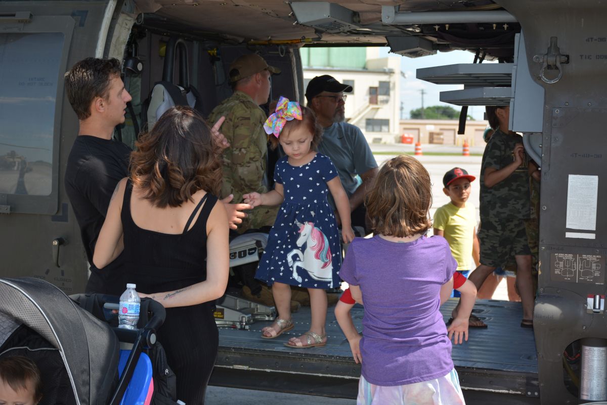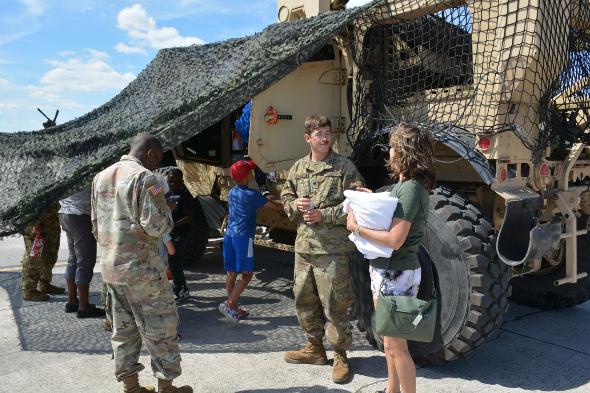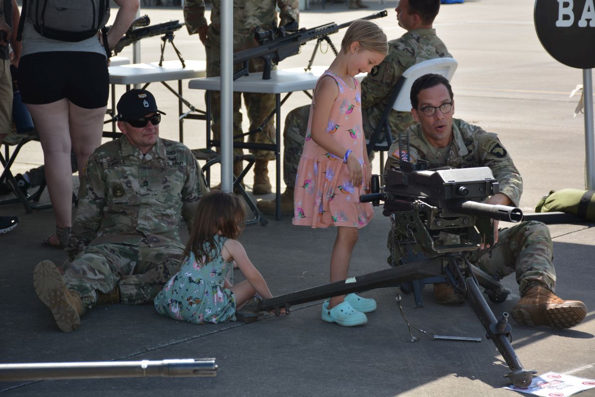 101st Soldiers share insight about military vehicles, weapons, and gear, at static displays during the Air Assault Demonstration at Week of the Eagles at Fort Campbell on Tue June 22 2021 (Lee Erwin).