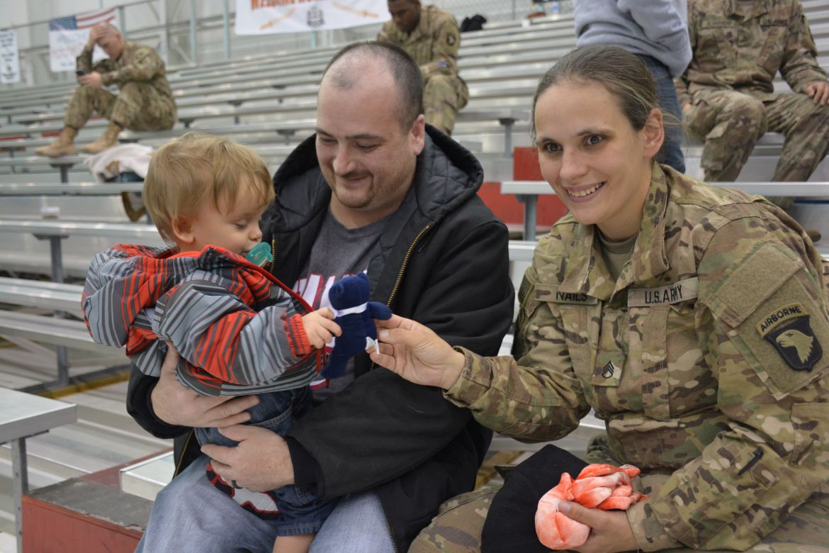 FORT CAMPBELL, Ky. (CLARKSVILLENOW) 110 Soldiers with the 101st Combat Aviation Brigade of the 101st Airborne Division (Air Assault) were welcomed back home to Fort Campbell from deployment in a ceremony Friday morning.