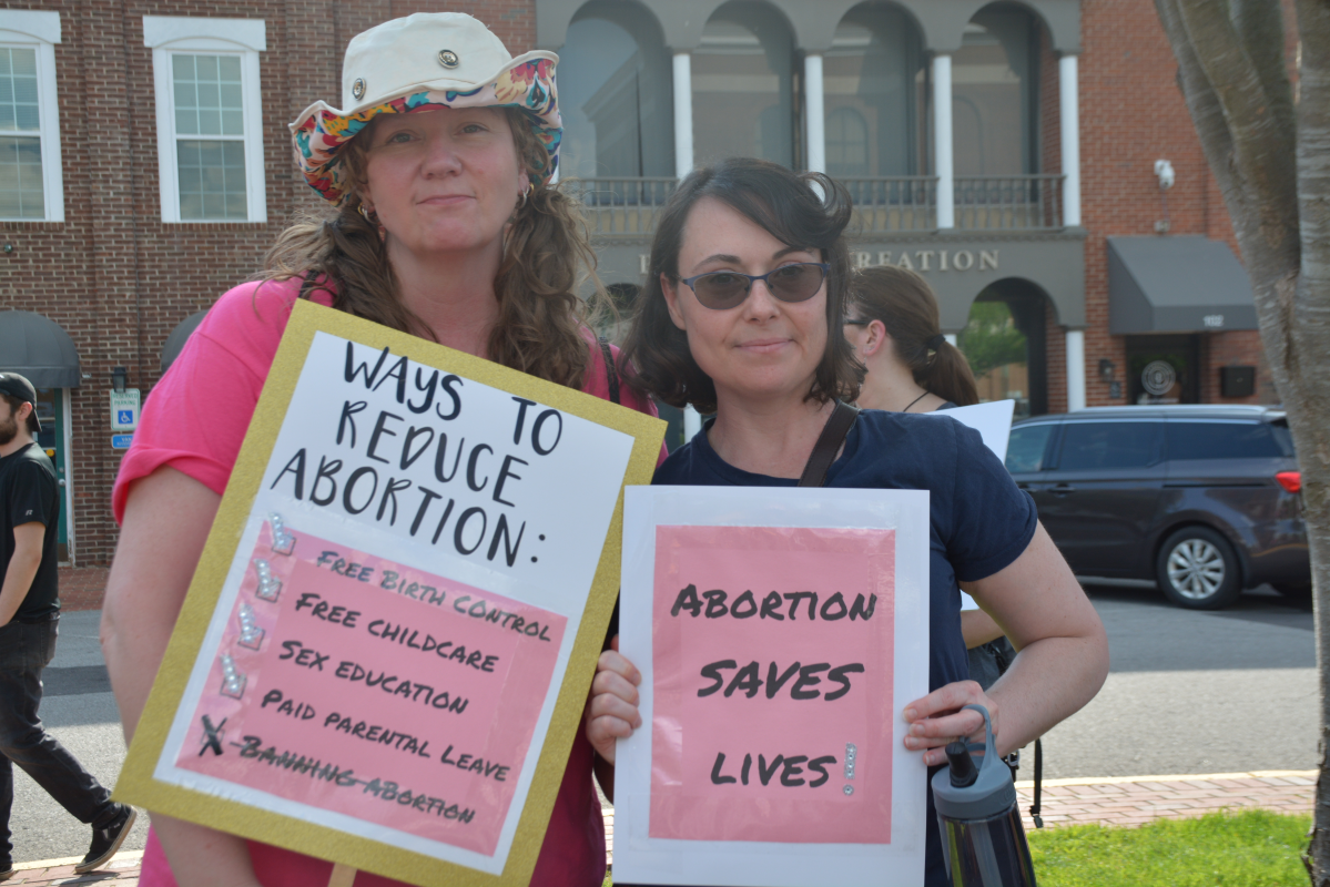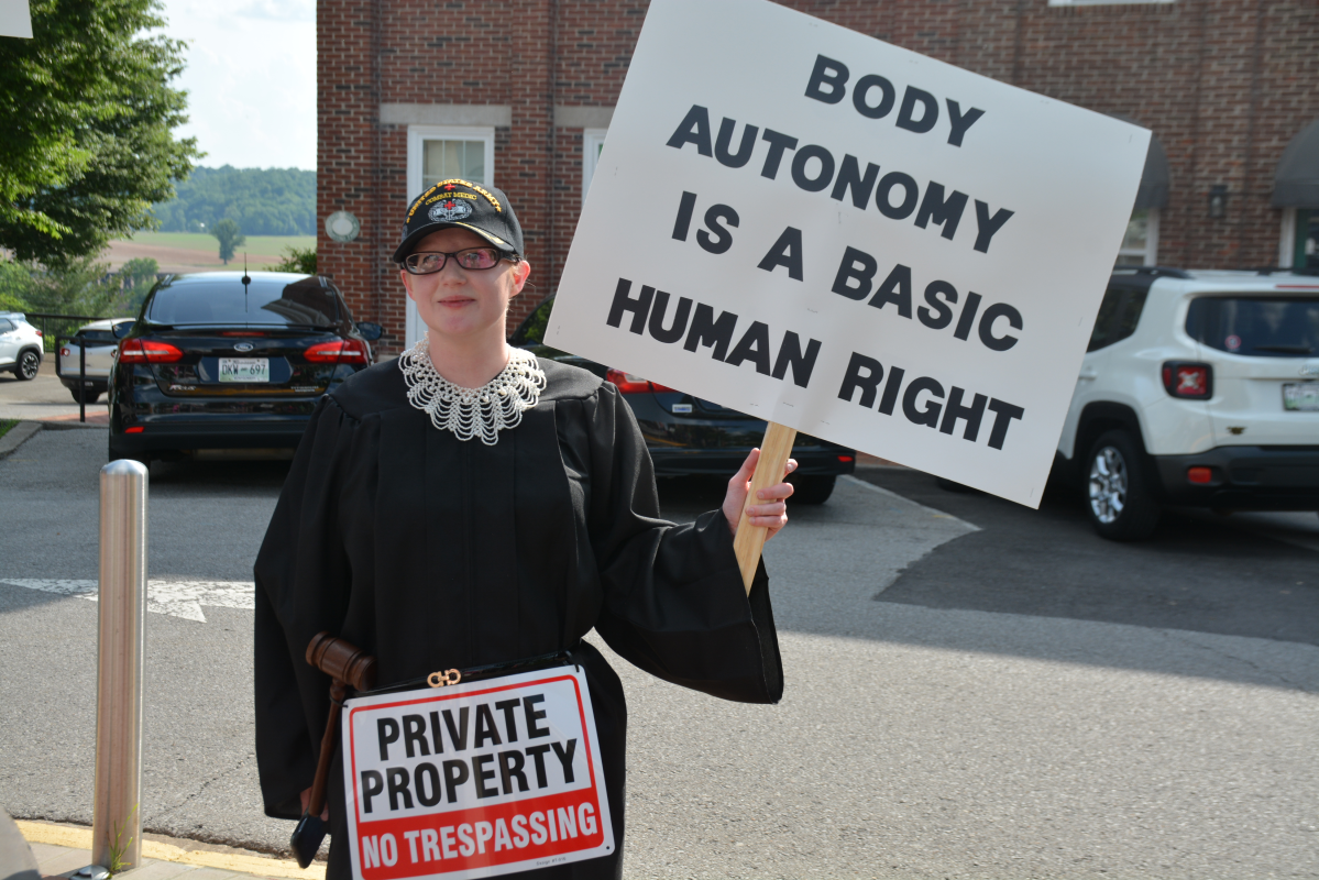 Clarksville NowProtesters holding signs in response to Supreme Court leaked Roe v. Wade documents on May 13, 2022. (Angela Peterson)