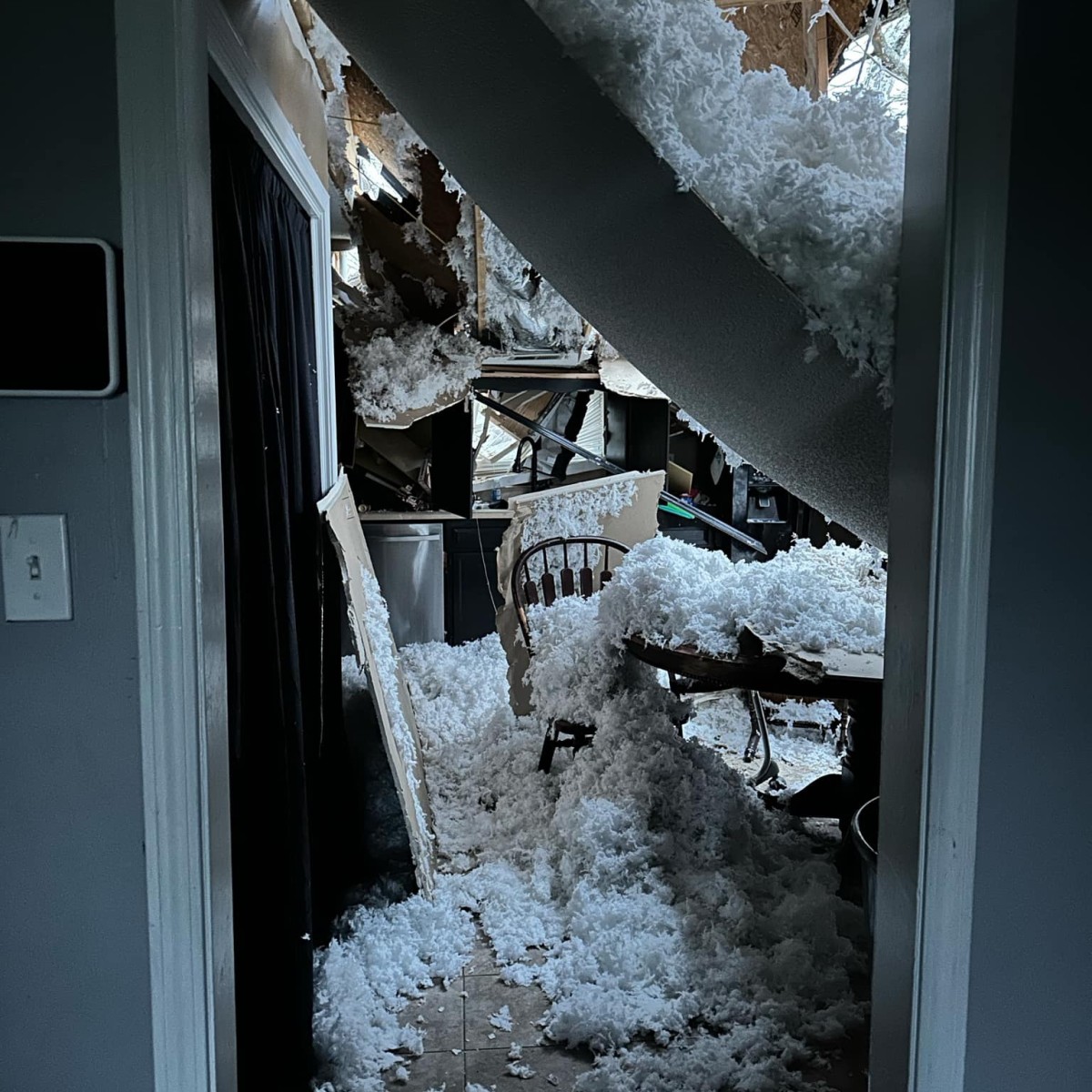 “She proceeded to tell me the tree fell onto our home,” Noll said. “Then, what was going on at the time was my 15-year-old and his younger siblings of 11, 8 and 4, they were playing out in the kitchen. My oldest said that’s when he heard a crash, which he thought was thunder, but then noticed the ceiling was beginning to fall down.”