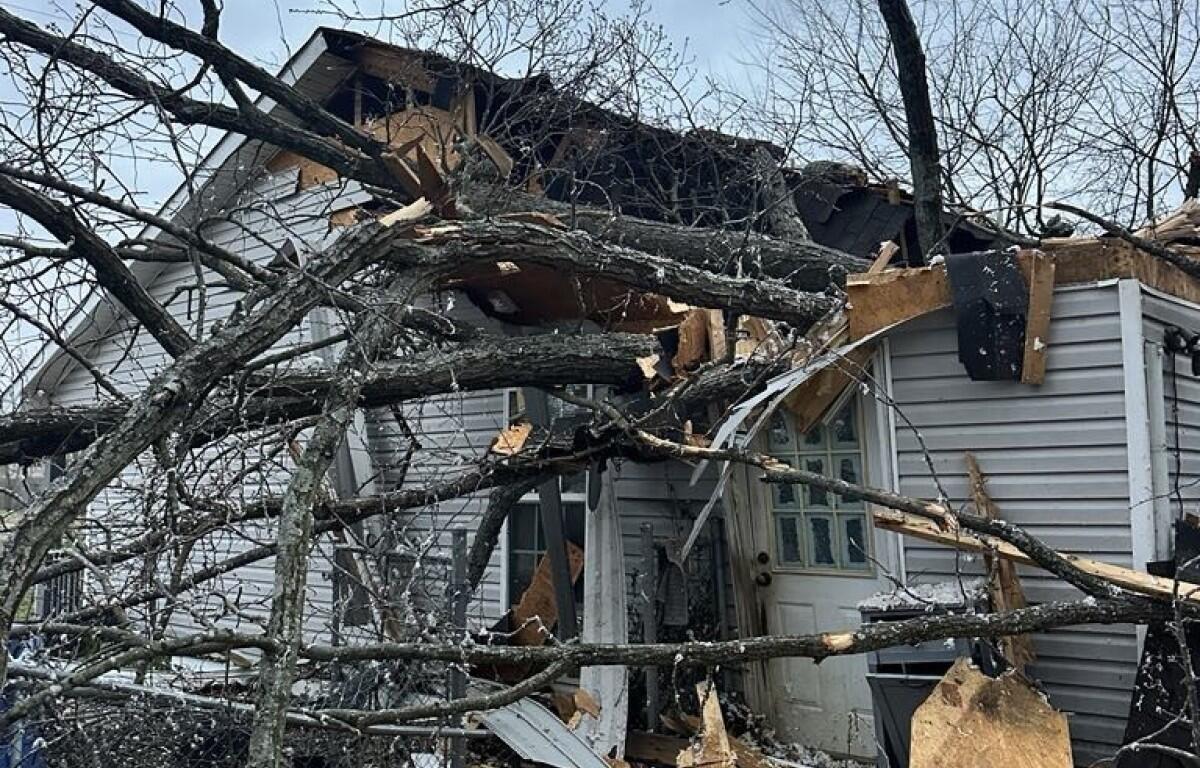 On the night of Wednesday, March 19, the winds with gusts around 45 mph blew a large tree onto the home of Justin Noll on Caney Lane, off Trenton Road. Noll, who’s an Army veteran, told Clarksville Now he was working in Nashville at the time when he got an urgent text from his wife.
