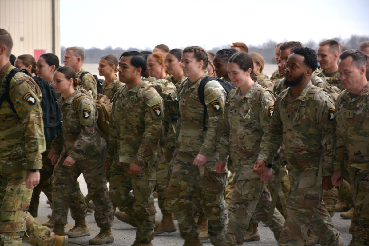 Clarksville NowFamily and friends welcomed home 164 soldiers with the 101st Combat Aviation Brigade as they returned from a nine-month deployment to the Middle East. A ceremony was held at Sabre Army Airfield on March 8, 2023. (Lee Erwin)