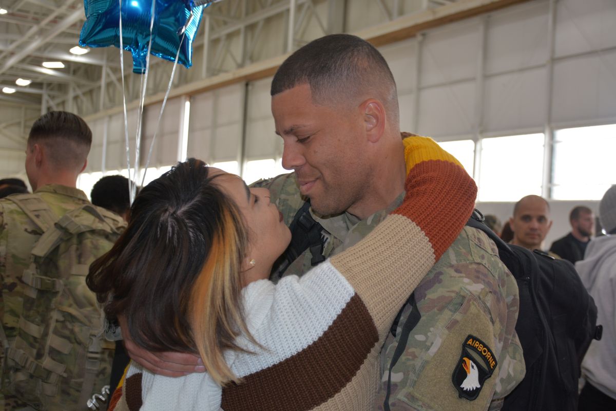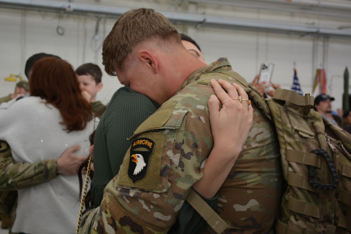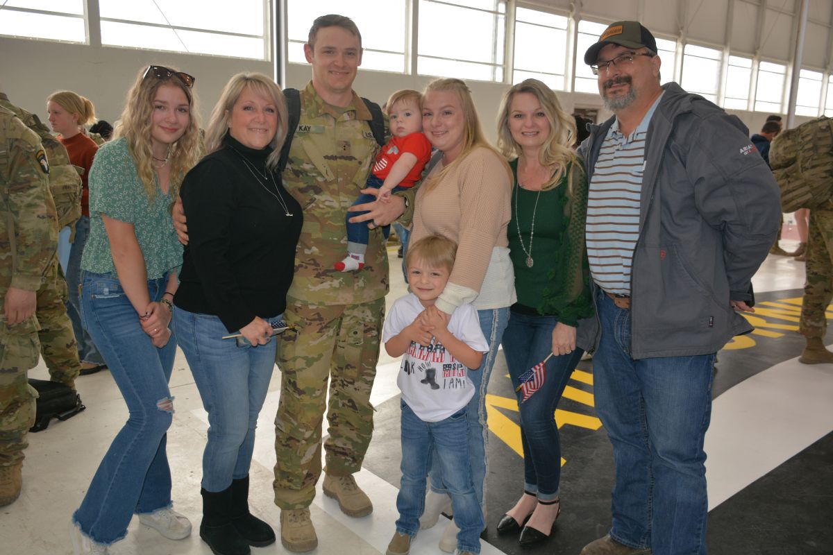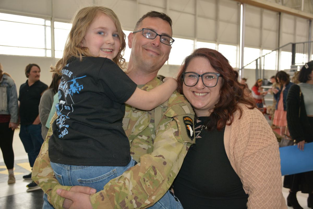 Family and friends welcomed home 164 soldiers with the 101st Combat Aviation Brigade as they returned from a nine-month deployment to the Middle East. A ceremony was held at Sabre Army Airfield on March 8, 2023. (Lee Erwin)