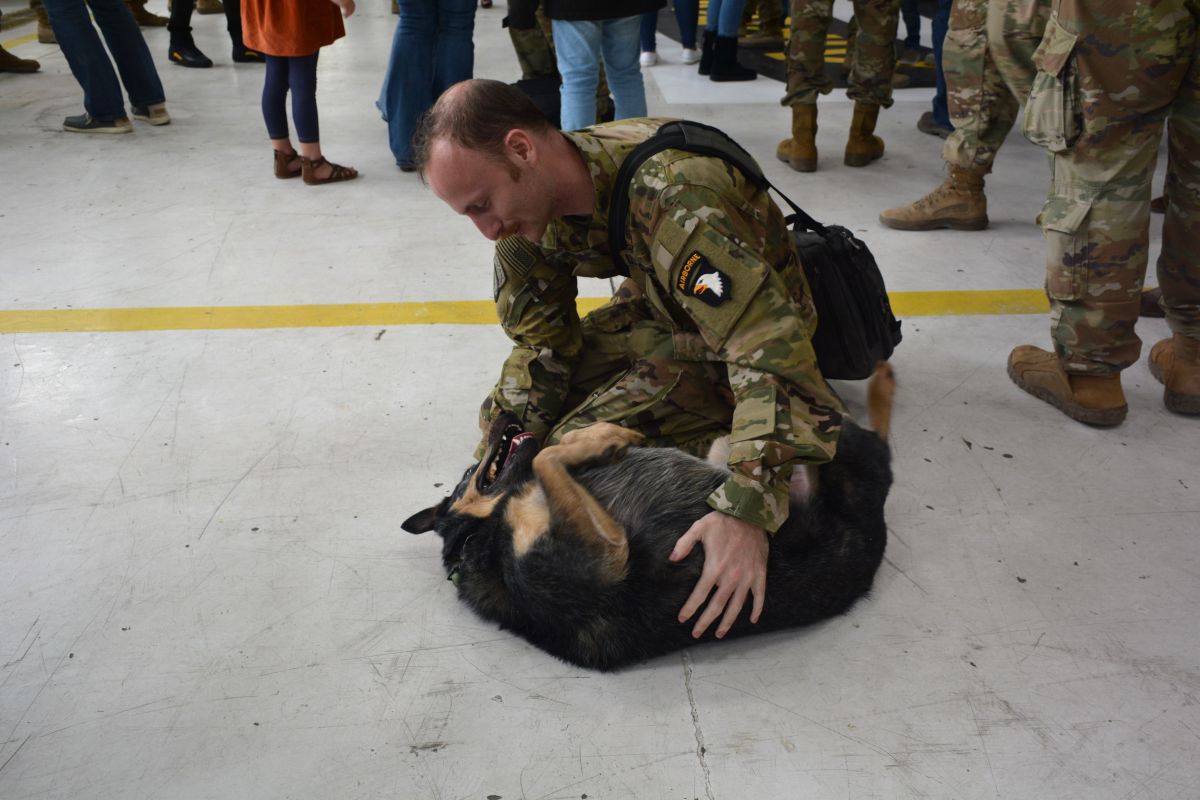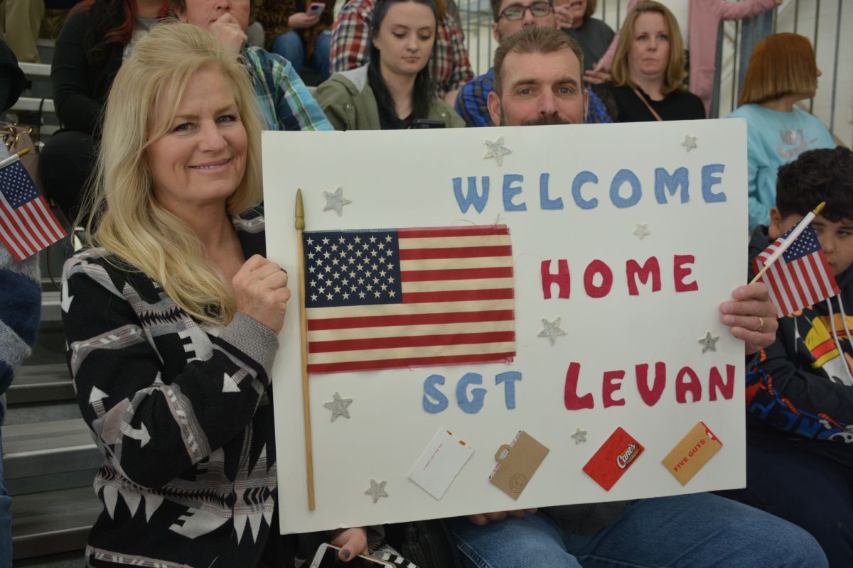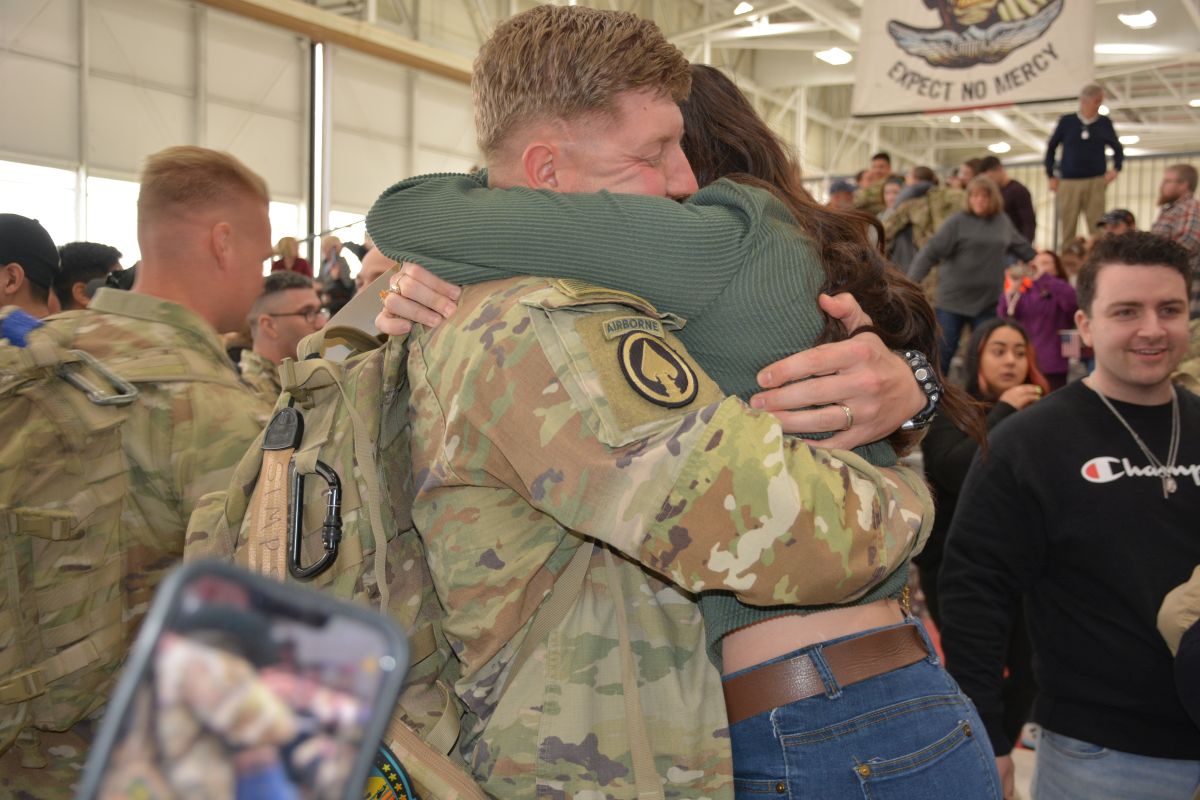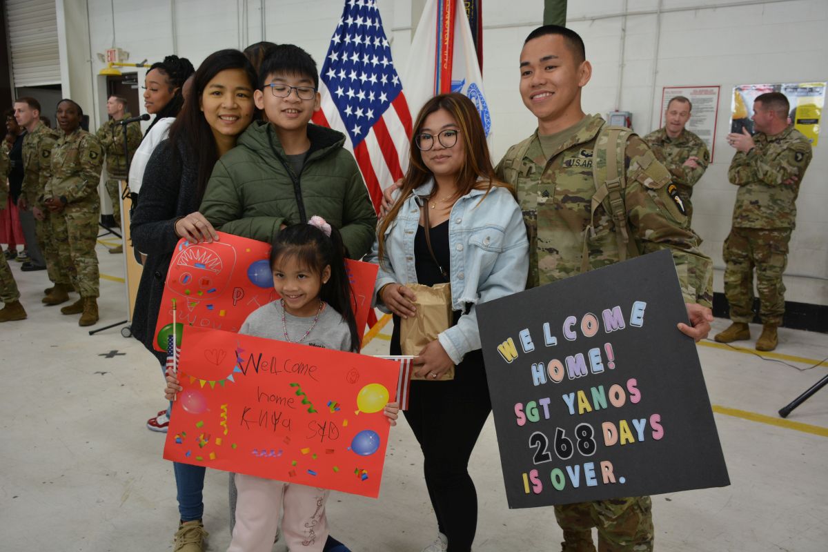 Family and friends welcomed home 164 soldiers with the 101st Combat Aviation Brigade as they returned from a nine-month deployment to the Middle East. A ceremony was held at Sabre Army Airfield on March 8, 2023. (Lee Erwin)