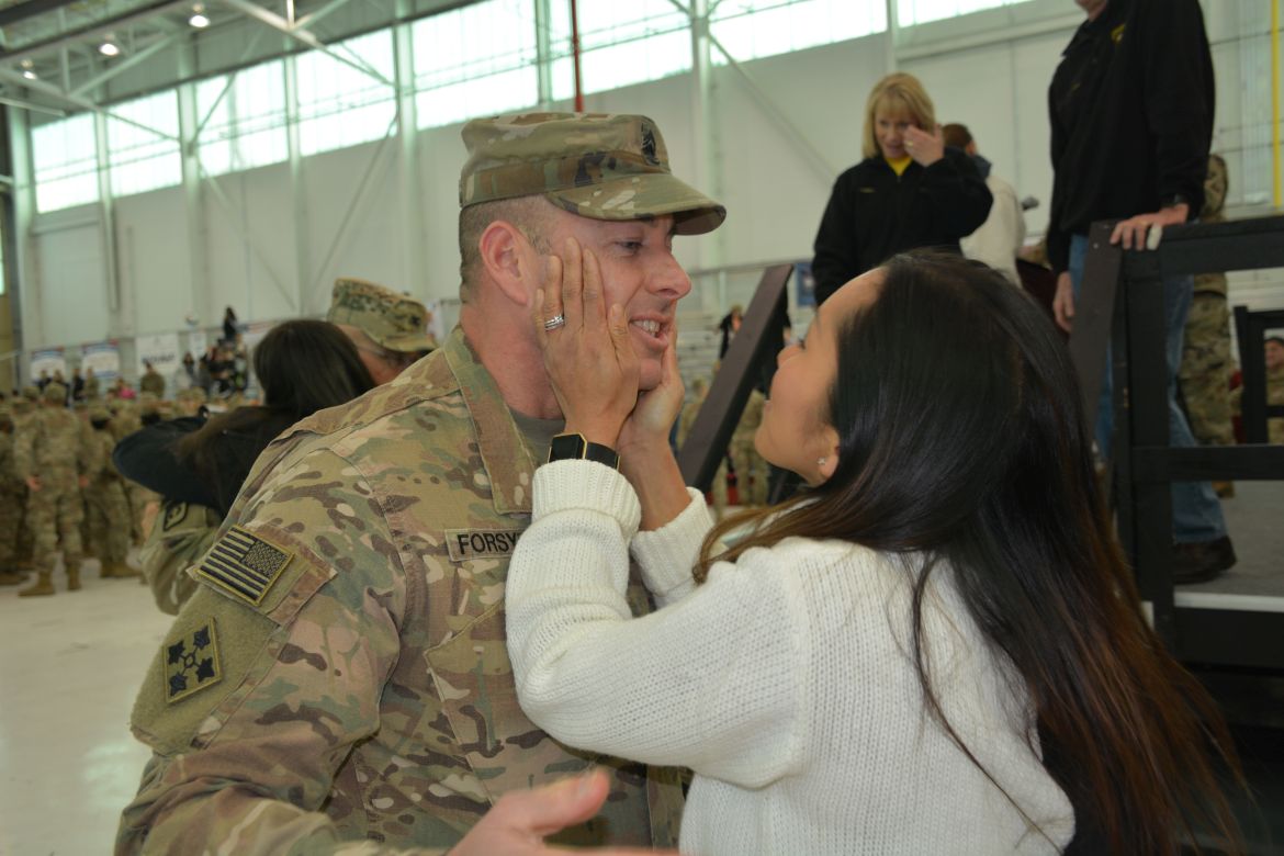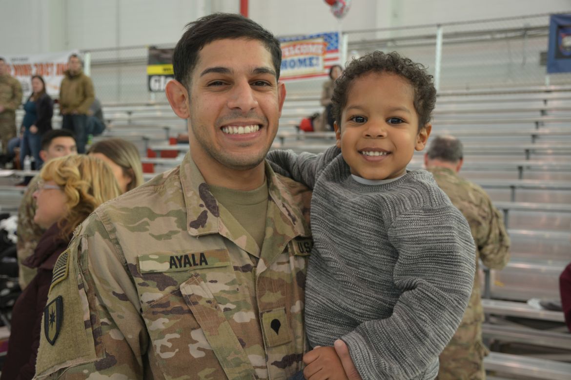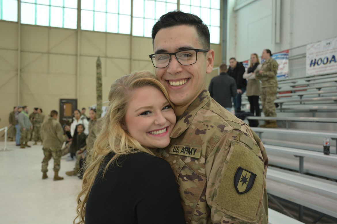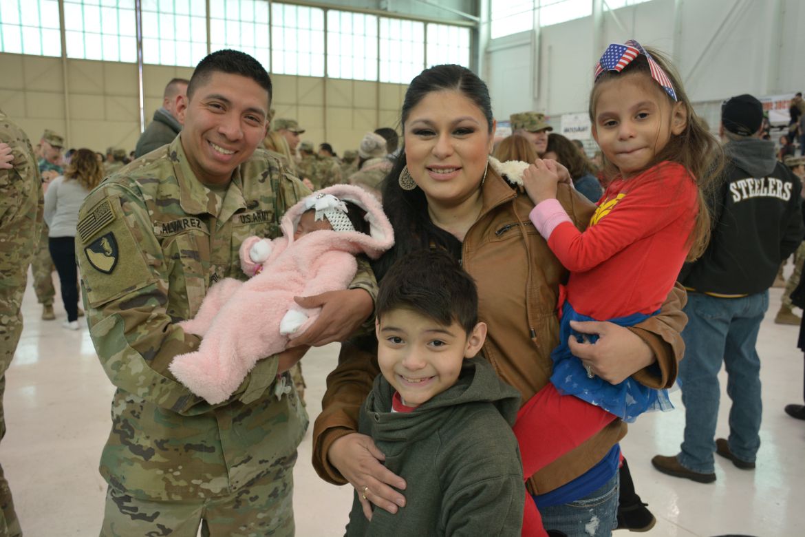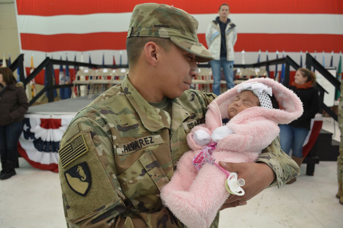 One soldier, Sergeant Mariano Alvarez, was seeing his daughter, Harmony Micaela, for the first time. “Words can’t even explain how I feel right now, I feel so loved, I’m flooded with emotions. She’s waited all her life to meet me and I’m finally here,” Alvarez said.