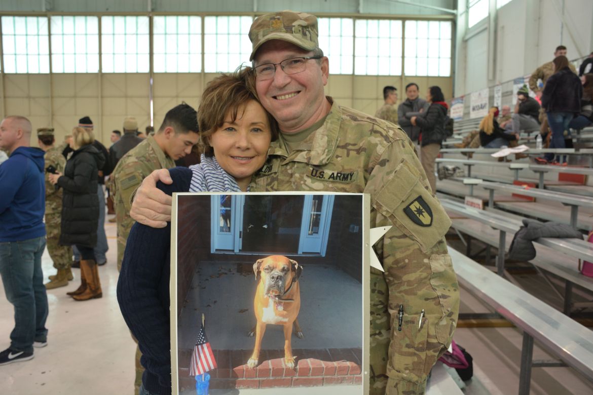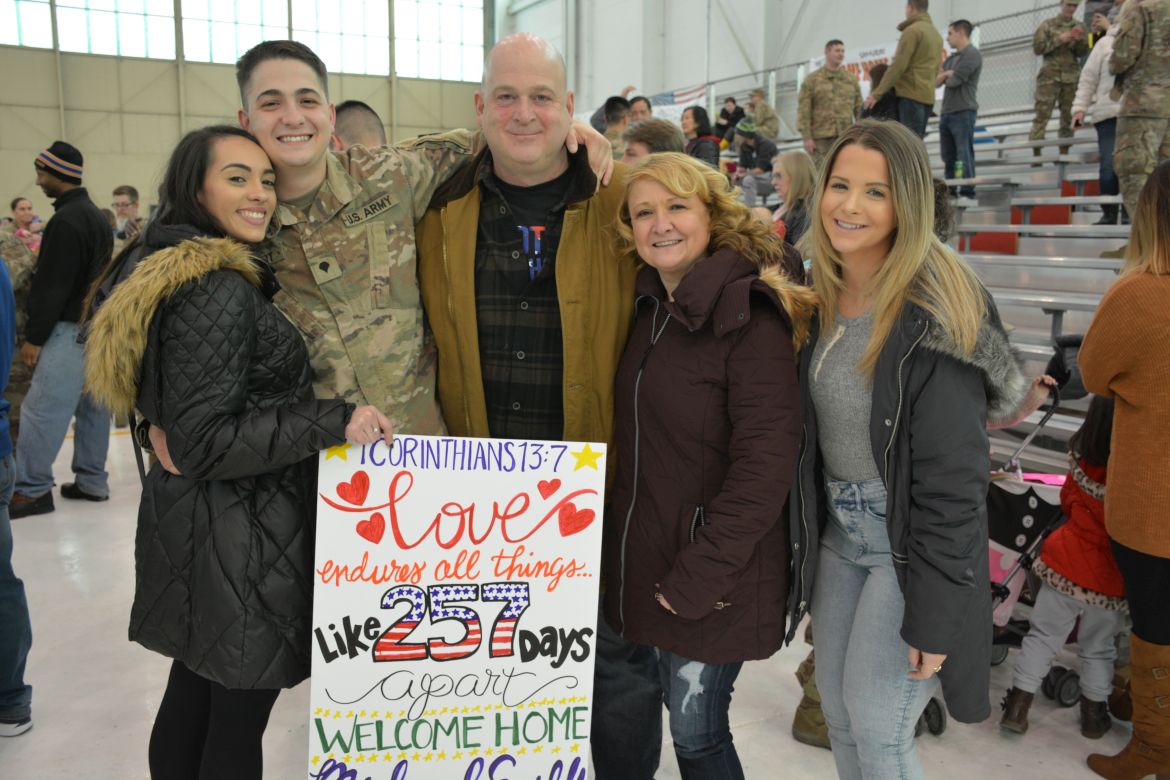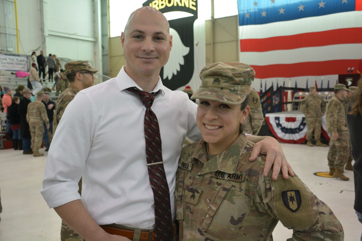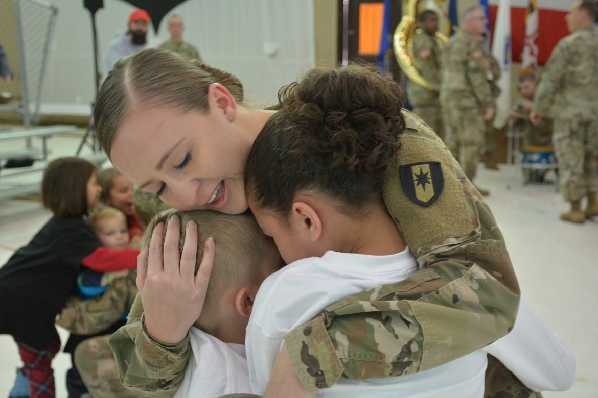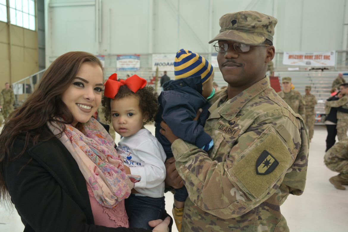 One soldier, Sergeant Mariano Alvarez, was seeing his daughter, Harmony Micaela, for the first time. “Words can’t even explain how I feel right now, I feel so loved, I’m flooded with emotions. She’s waited all her life to meet me and I’m finally here,” Alvarez said.