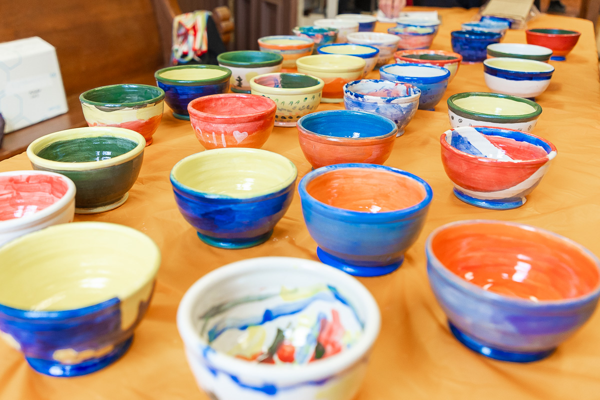The bowls are painted throughout the year. “Our bowls come from SpiritFest, which happens on the first Saturday in December,” said Foust. “We host a painting party at the church and paint anywhere from 25 to 50 bowls.” Foust explained that the painting and firing of the bowls are done well in advance to make sure they are ready by February. “By the beginning of January, the painting parties are finished, and the bowls are dried and ready to go.”