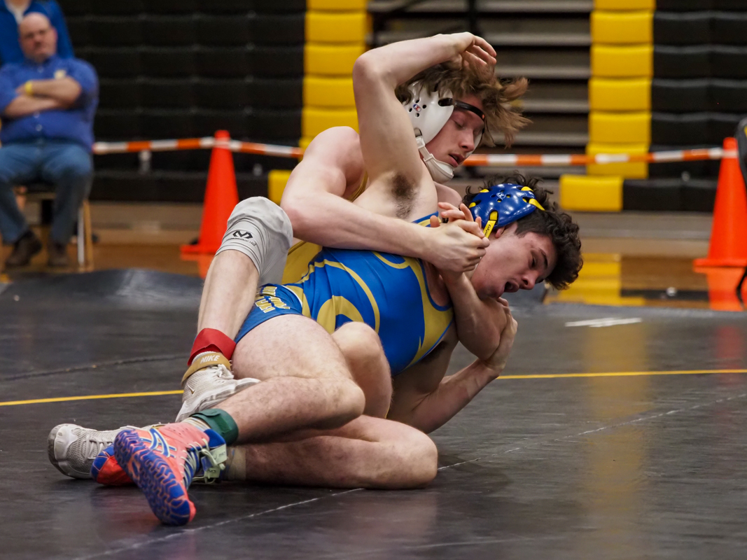 NWHS Kevin Shaw, bottom, at the Section 3 Class AA tournament on Saturday, Feb. 19, 2022. (Ryan Vinson)