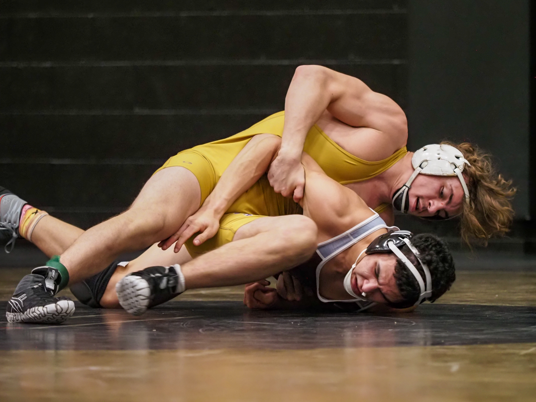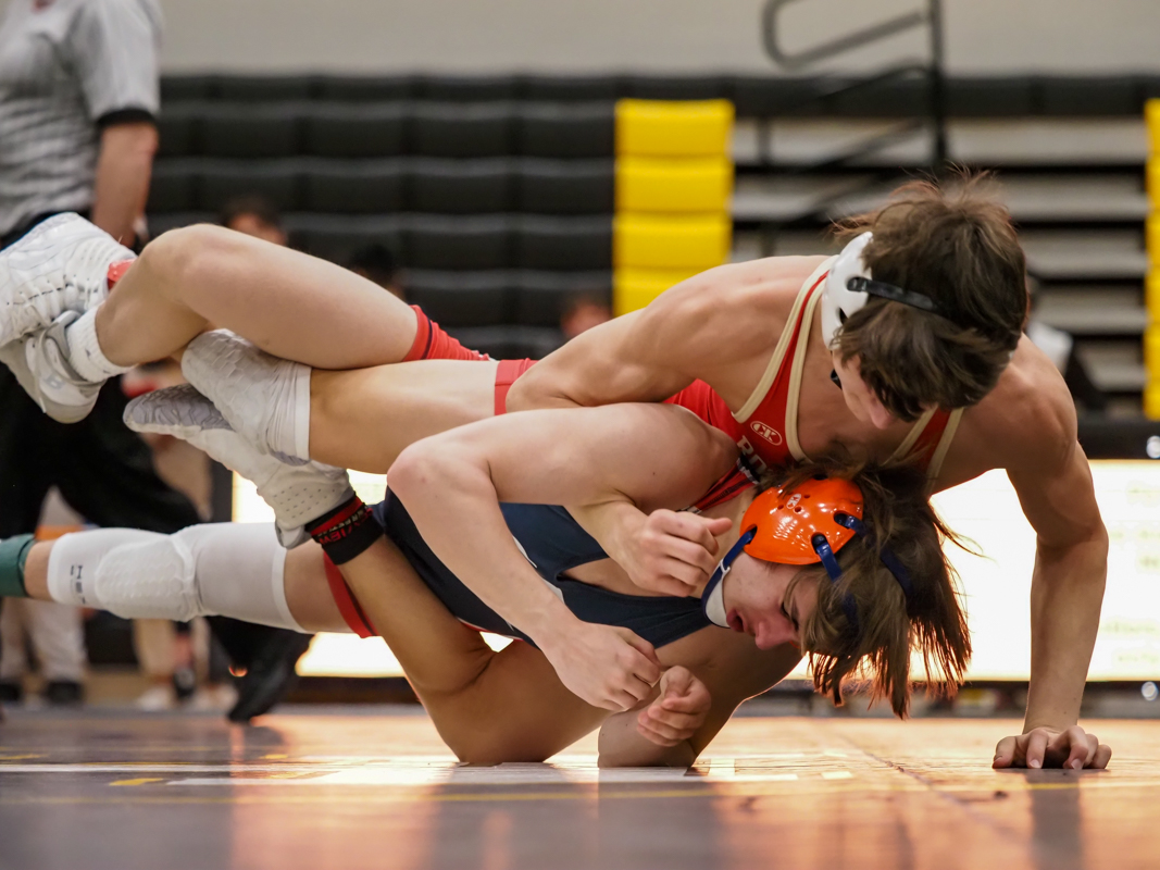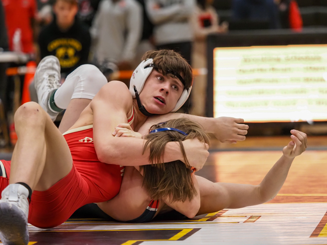 CHS Jace Powell, top, RHS Ruben Avalos, bottom, at the Section 3 Class AA tournament on Saturday, Feb. 19, 2022. (Ryan Vinson)