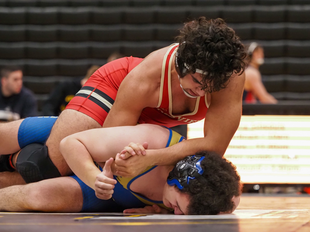 RHS Ruben Avalos, top, at the Section 3 Class AA tournament on Saturday, Feb. 19, 2022. (Ryan Vinson)