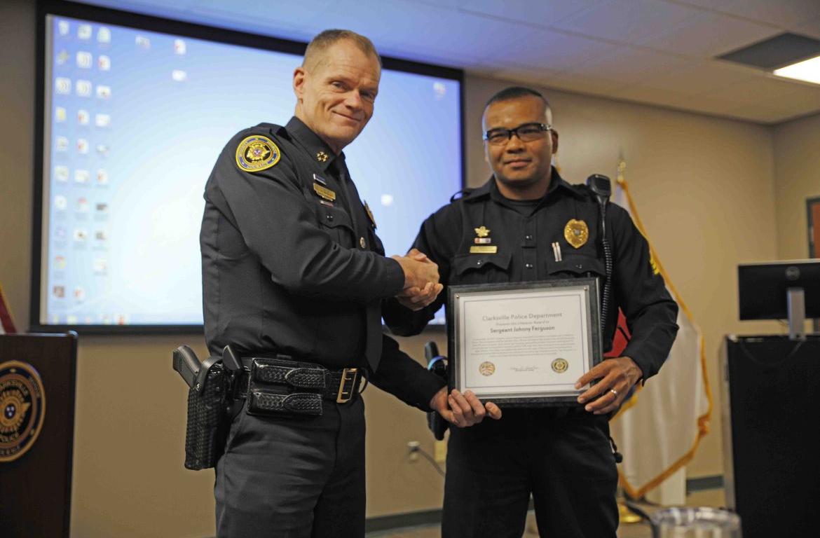 The officers receiving the awards were Sgt. Johnny Ferguson, Officer Michael Blackwell, and Officer Brandan Hendricks. The awards were presented for the following actions: