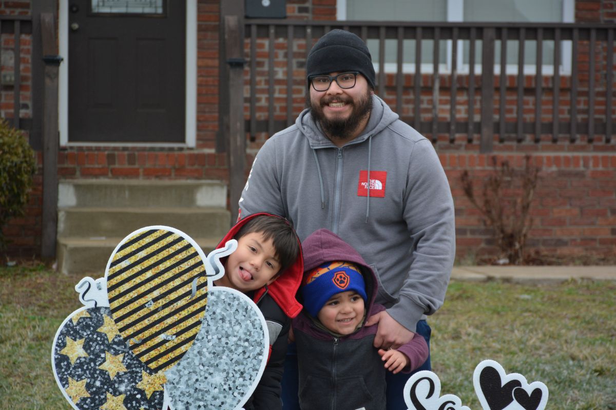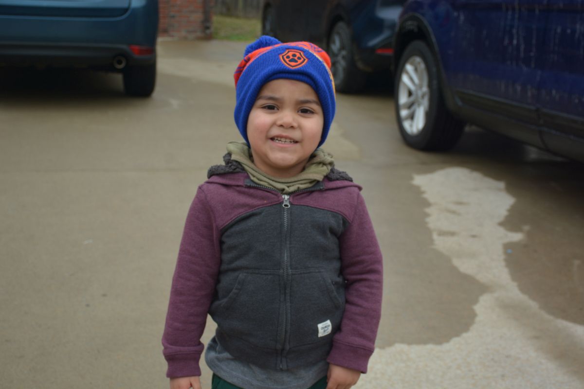 Mason Ruiz joins his brother Grayson and father Nathan at the drive-through of Clarksville & Montgomery County First Responders on Jan 31, 2023. (Lee Erwin)