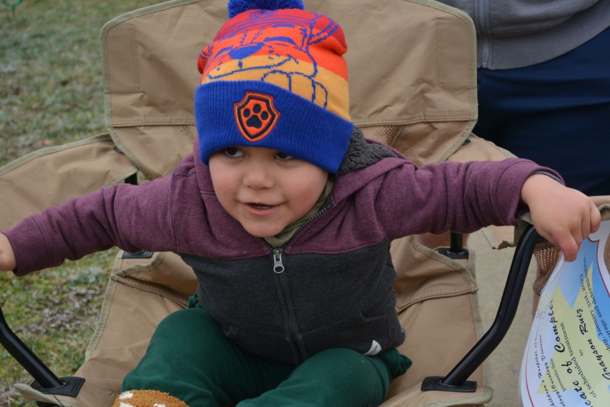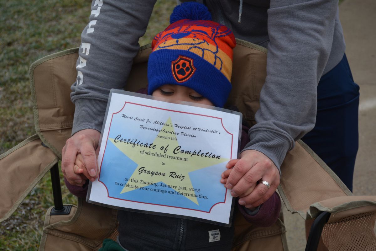 Because of the cold and damp weather, his 6-month-old little sister Luna stayed inside. At one point, Grayson was showing off his Certificate of Completion of his treatment from Monroe Carell Jr. Children’s Hospital at Vanderbilt.
