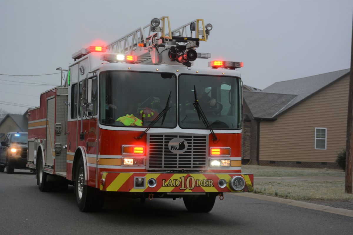 Clarksville & Montgomery County First Responders carried out a drive-through for 3-year-old Grayson Ruiz on Jan 31, 2023. (Lee Erwin)