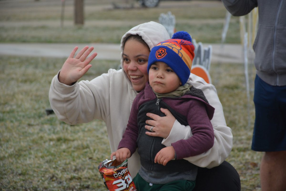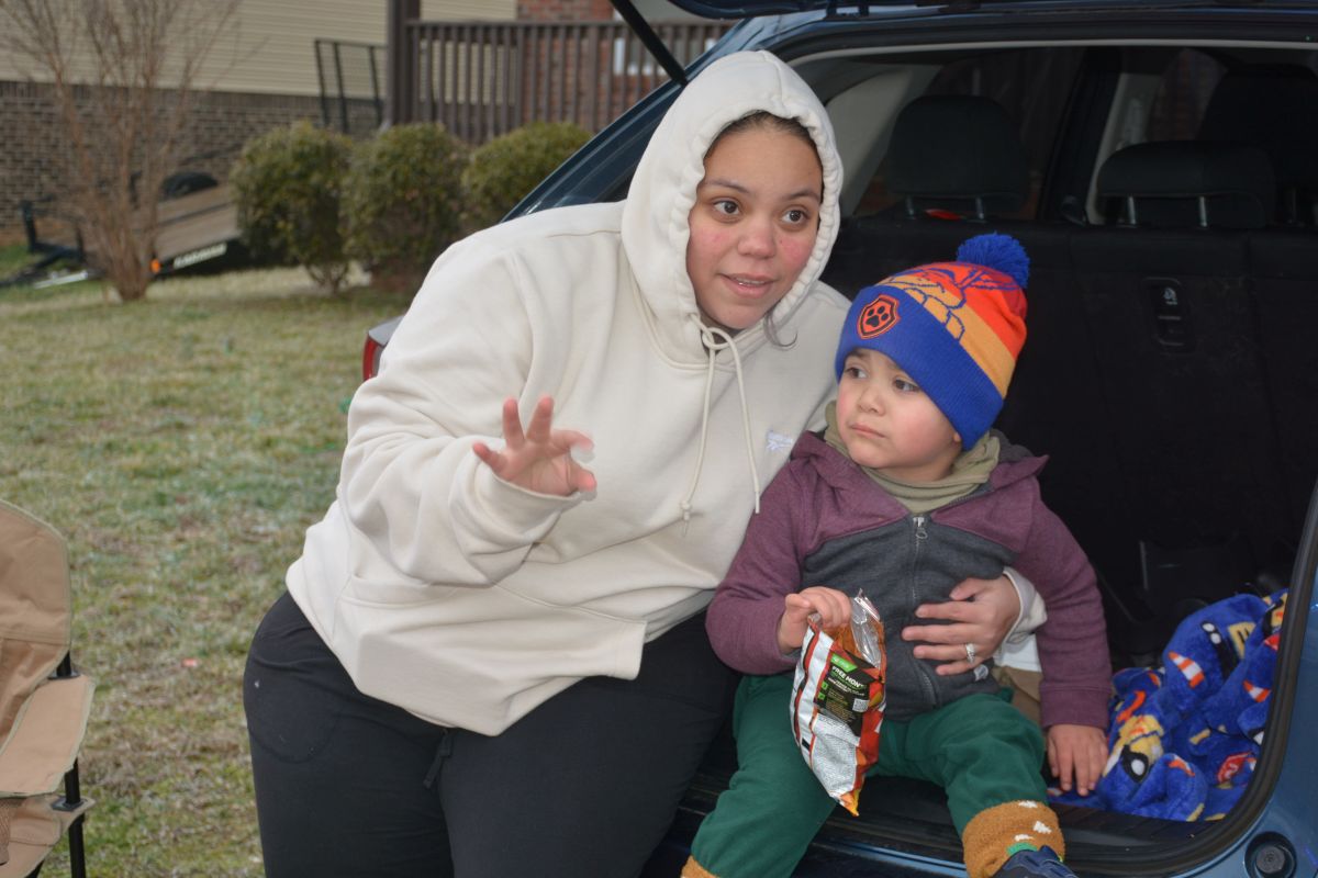 Brianna Ruiz and her son Grayson watch the drive-through of Clarksville & Montgomery County First Responders on Jan 31, 2023. (Lee Erwin)