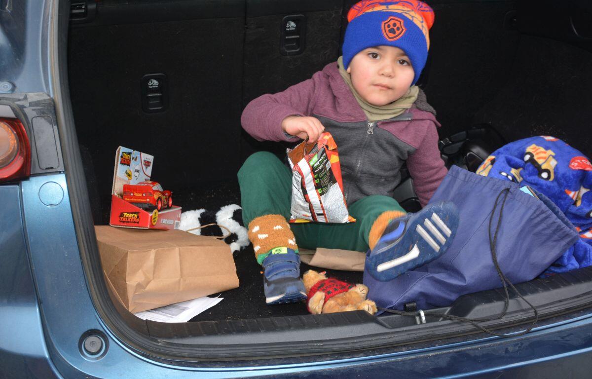 Three-year-old Grayson Ruiz holds his certificate from Monroe Carell Jr. Children’s Hospital at Vanderbilt at the drive-through of Clarksville & Montgomery County First Responders on Jan 31, 2023. (Lee Erwin)