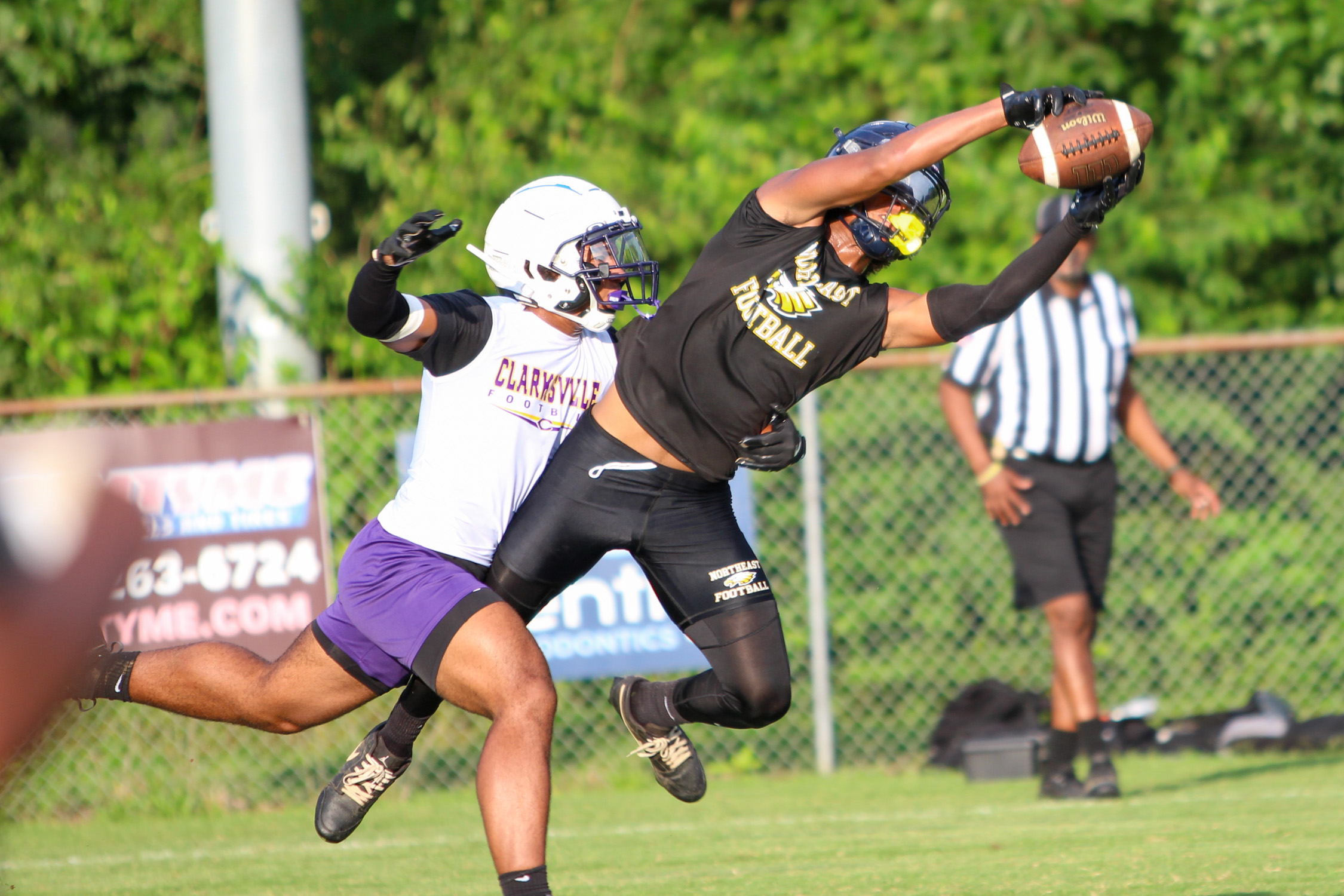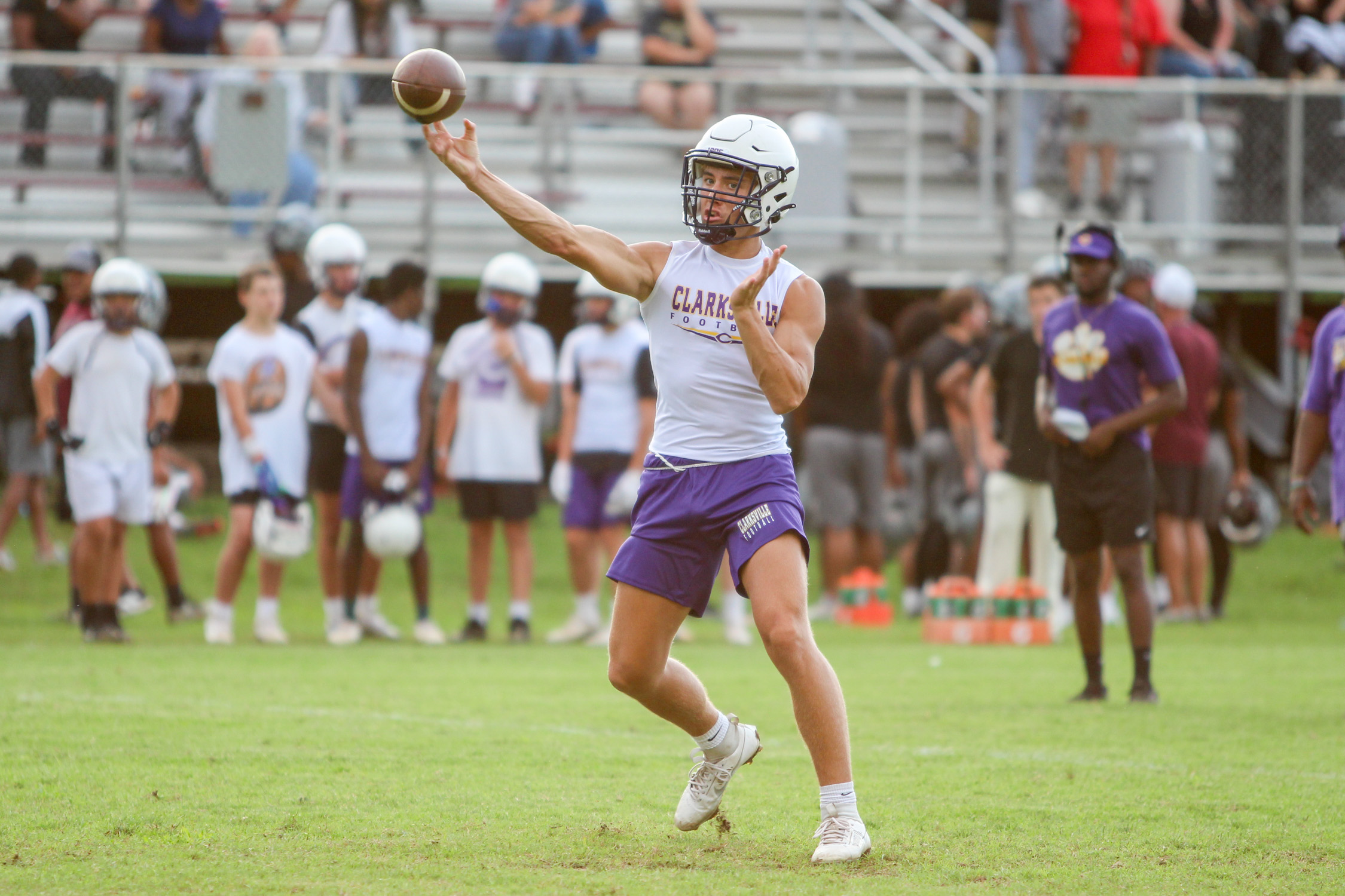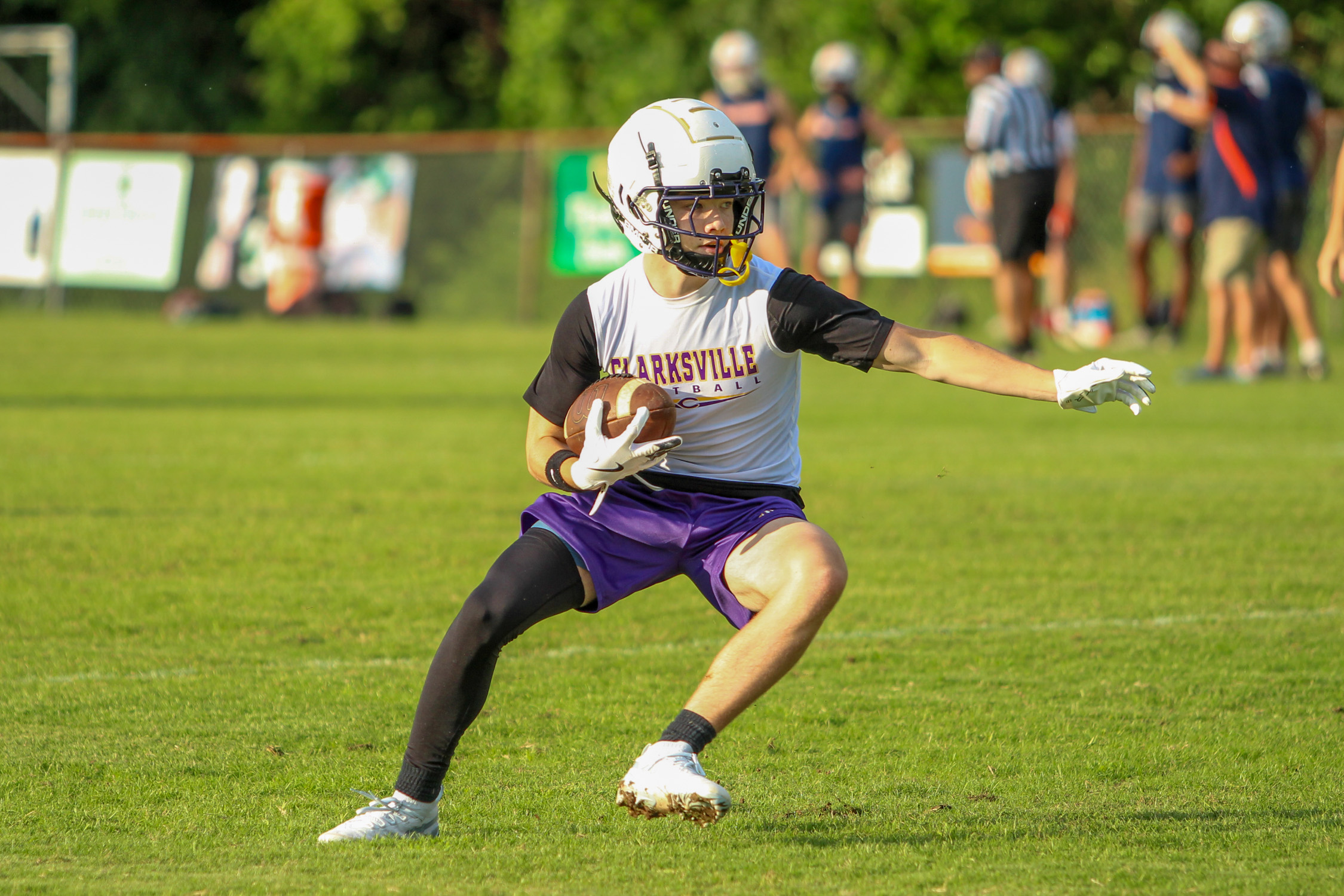 CLARKSVILLE, TN (CLARKSVILLE NOW) – Four Clarksville-area teams competed in seven-on-seven action Tuesday night at Clarksville High School. Northeast, West Creek, Kenwood and Clarksville High competed against each other and an assortment of schools around the area, such as Stewart County, Creek Wood, Maplewood and Dickson County.