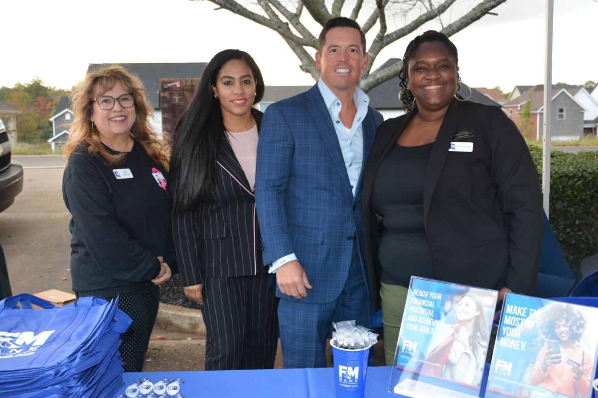 Julie Tarrents, Noelia Fernandez, Frazier Allen & Conchetta Willis at the 5 Star Media Group Business After Hours with the Clarksville Area Chamber of Commerce on Oct. 19, 2023. (Lee Erwin)