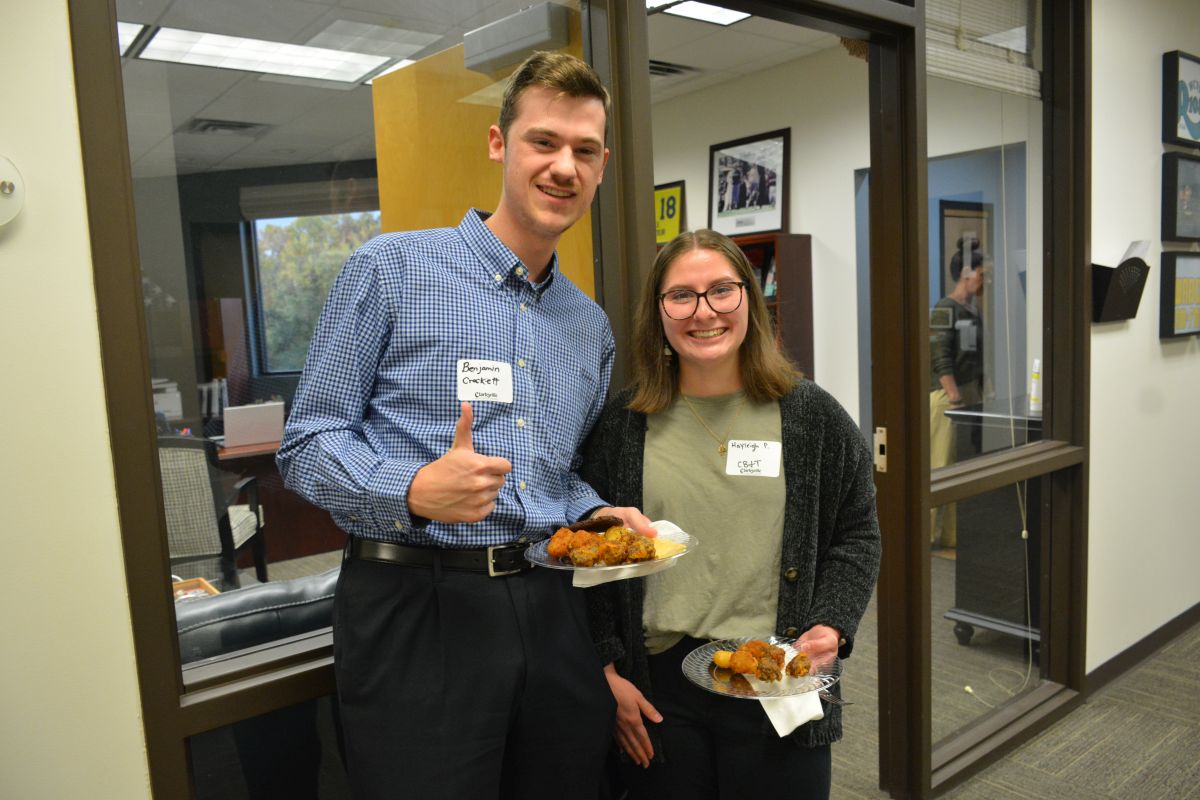 Benjamin Crockett & Hayleigh Petersonat the 5 Star Media Group Business After Hours with the Clarksville Area Chamber of Commerce on Oct. 19, 2023. (Lee Erwin)