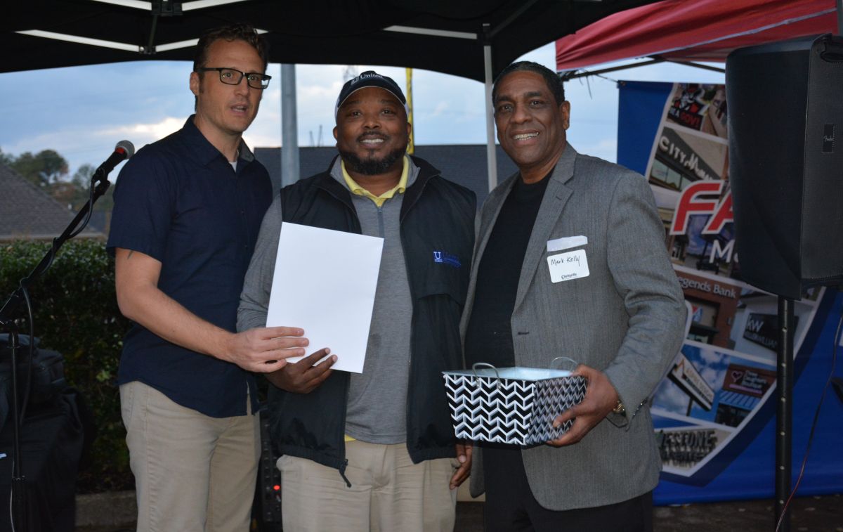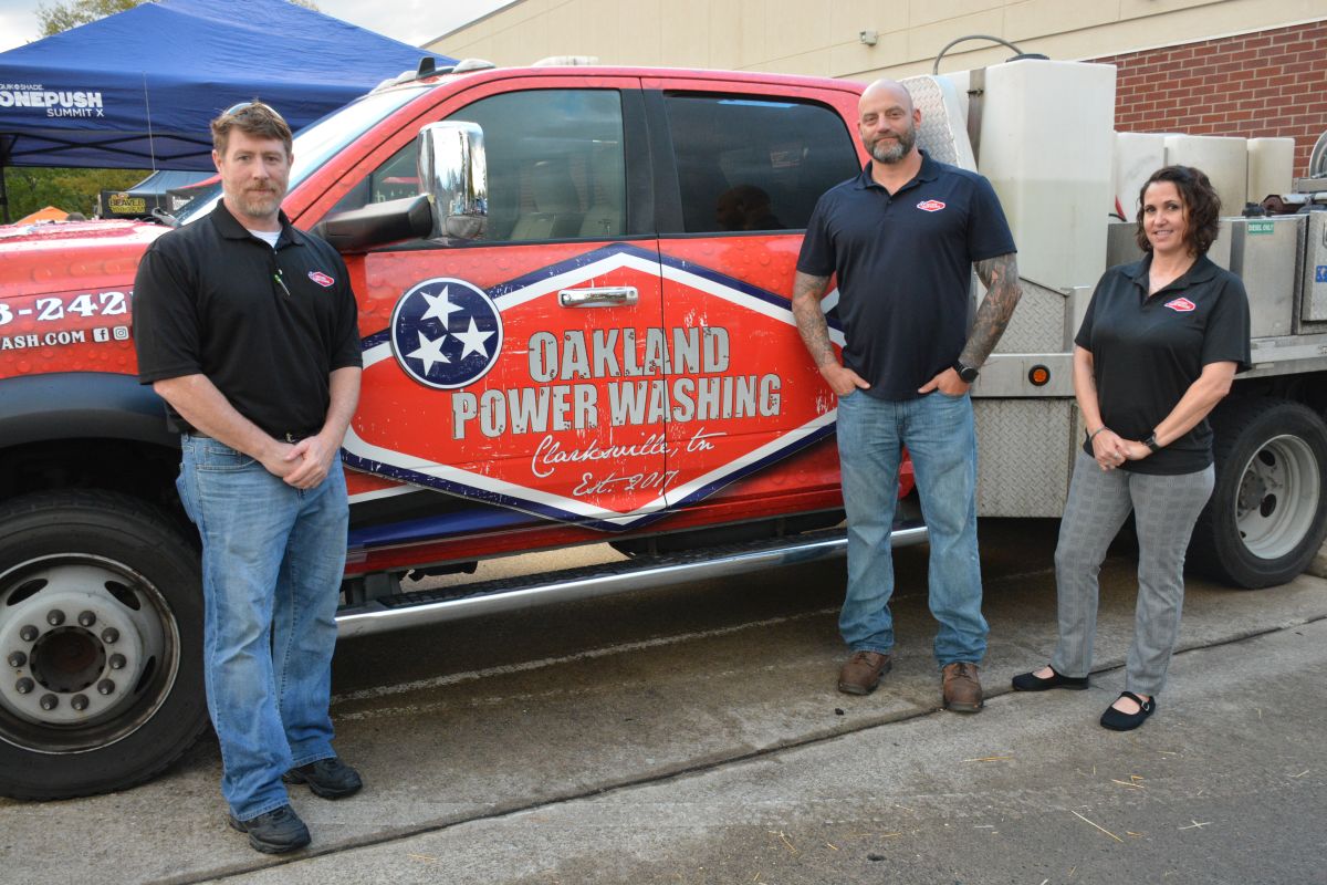 David Hiner, Anthony Cox & Kristy Perry at the 5 Star Media Group Business After Hours with the Clarksville Area Chamber of Commerce on Oct. 19, 2023. (Lee Erwin)