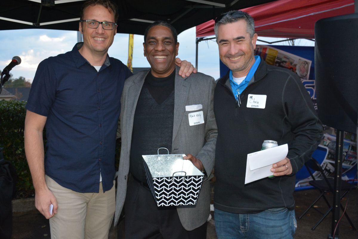 Ryan Ploeckelman, Mark Kelly and Chris Reneau at the 5 Star Media Group Business After Hours with the Clarksville Area Chamber of Commerce on Oct. 19, 2023. (Lee Erwin)