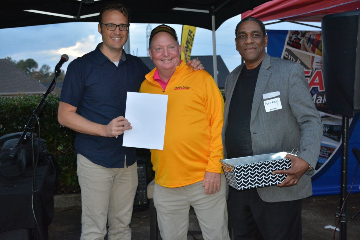 Joe White, Penny Rushing & Larry McLeod at the 5 Star Media Group Business After Hours with the Clarksville Area Chamber of Commerce on Oct. 19, 2023. (Lee Erwin)