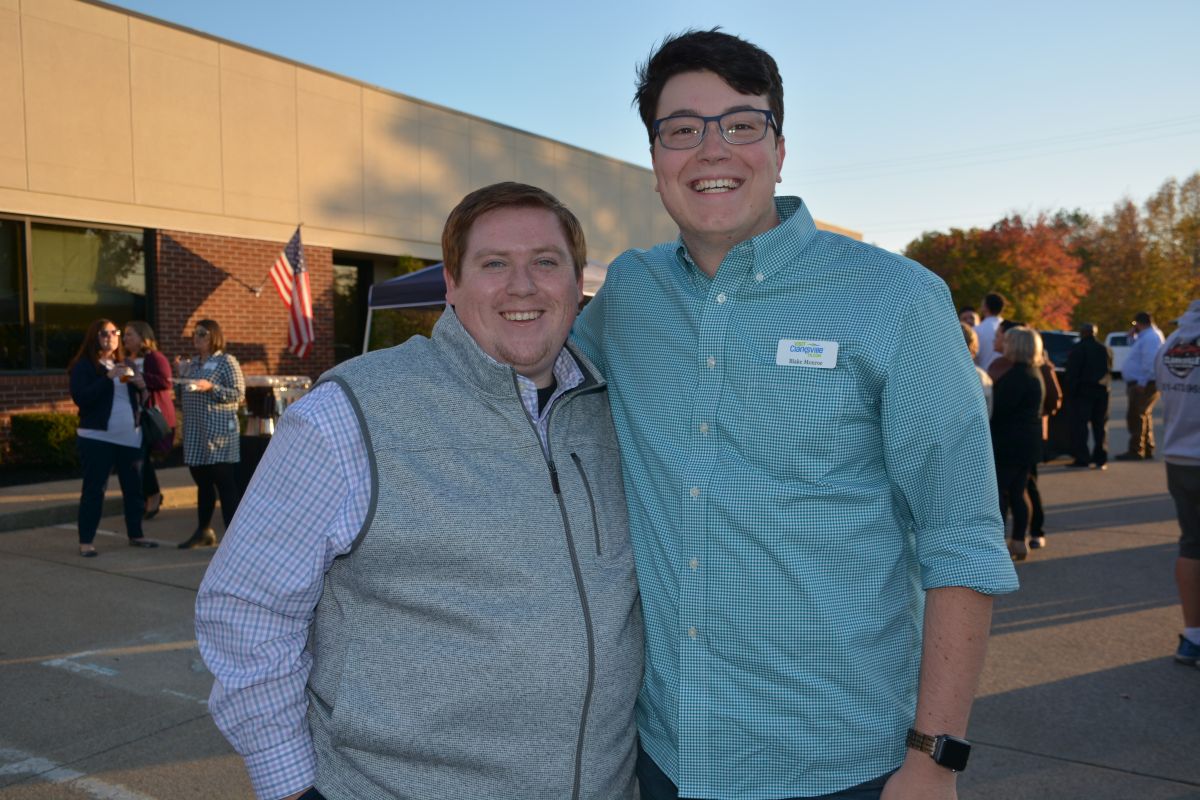 Jeff Matthews & Blake Monroe at the Clarksville Area Chamber of Commerce Business After Hours & Business to Business Expo at 5 Star Media Group on, Oct. 20, 2022. (Lee Erwin).