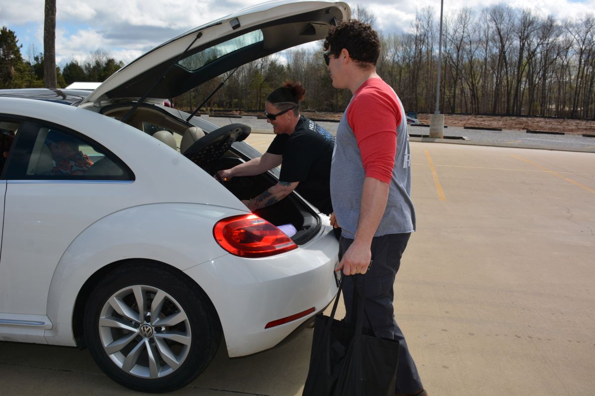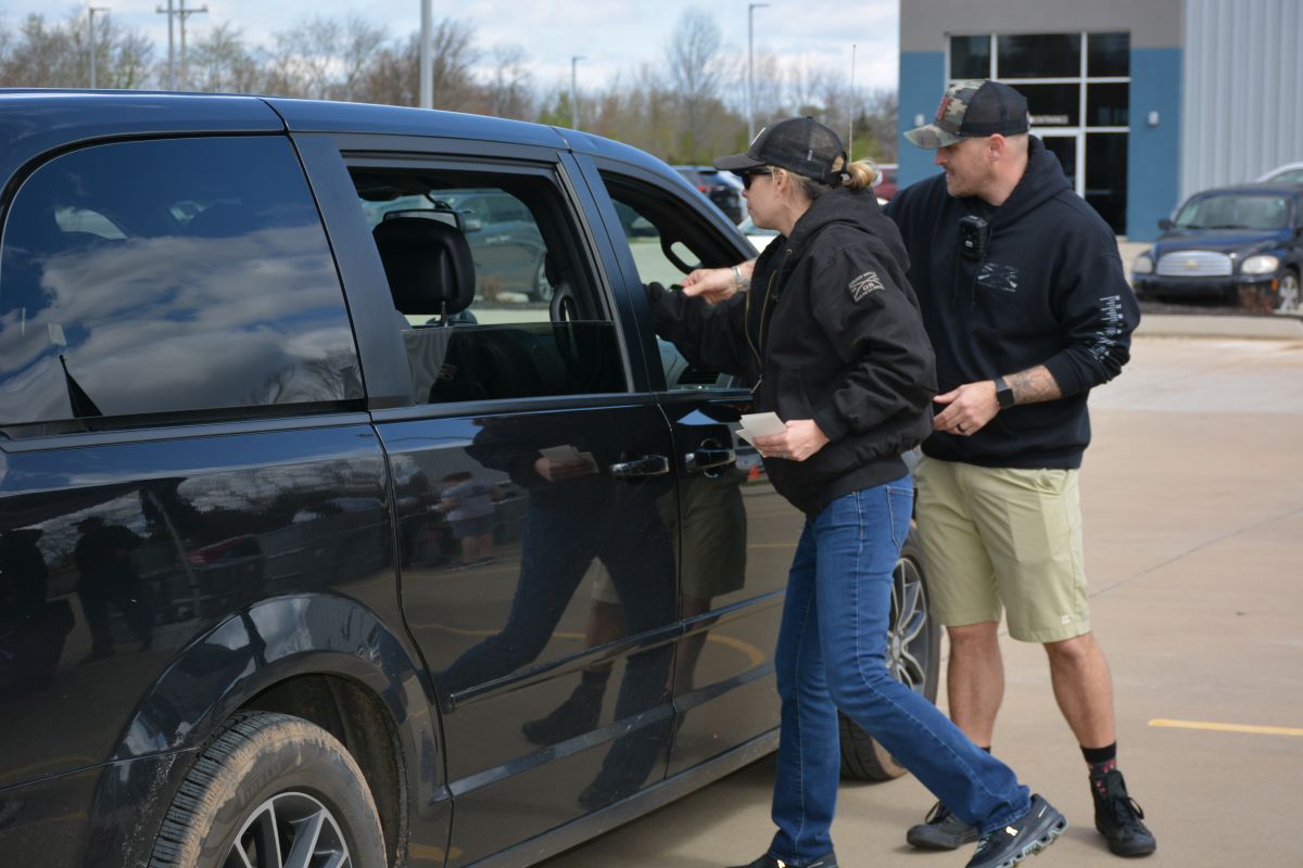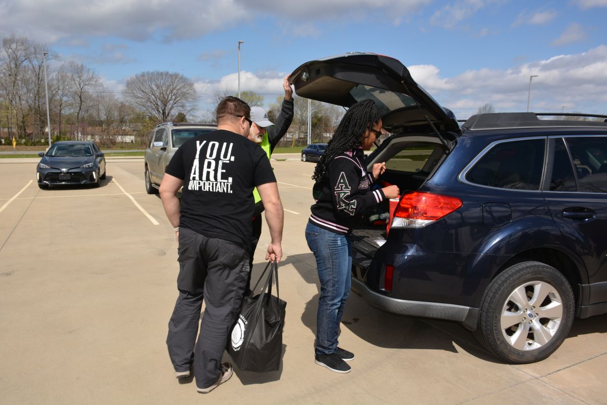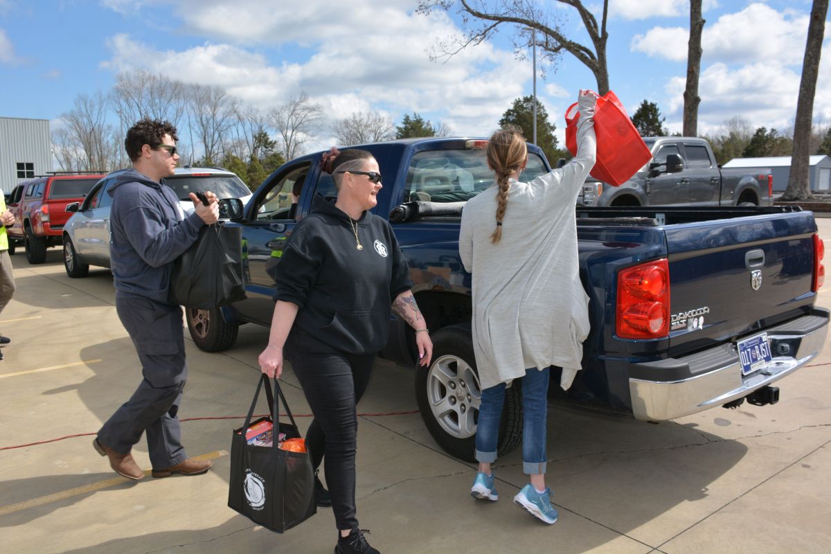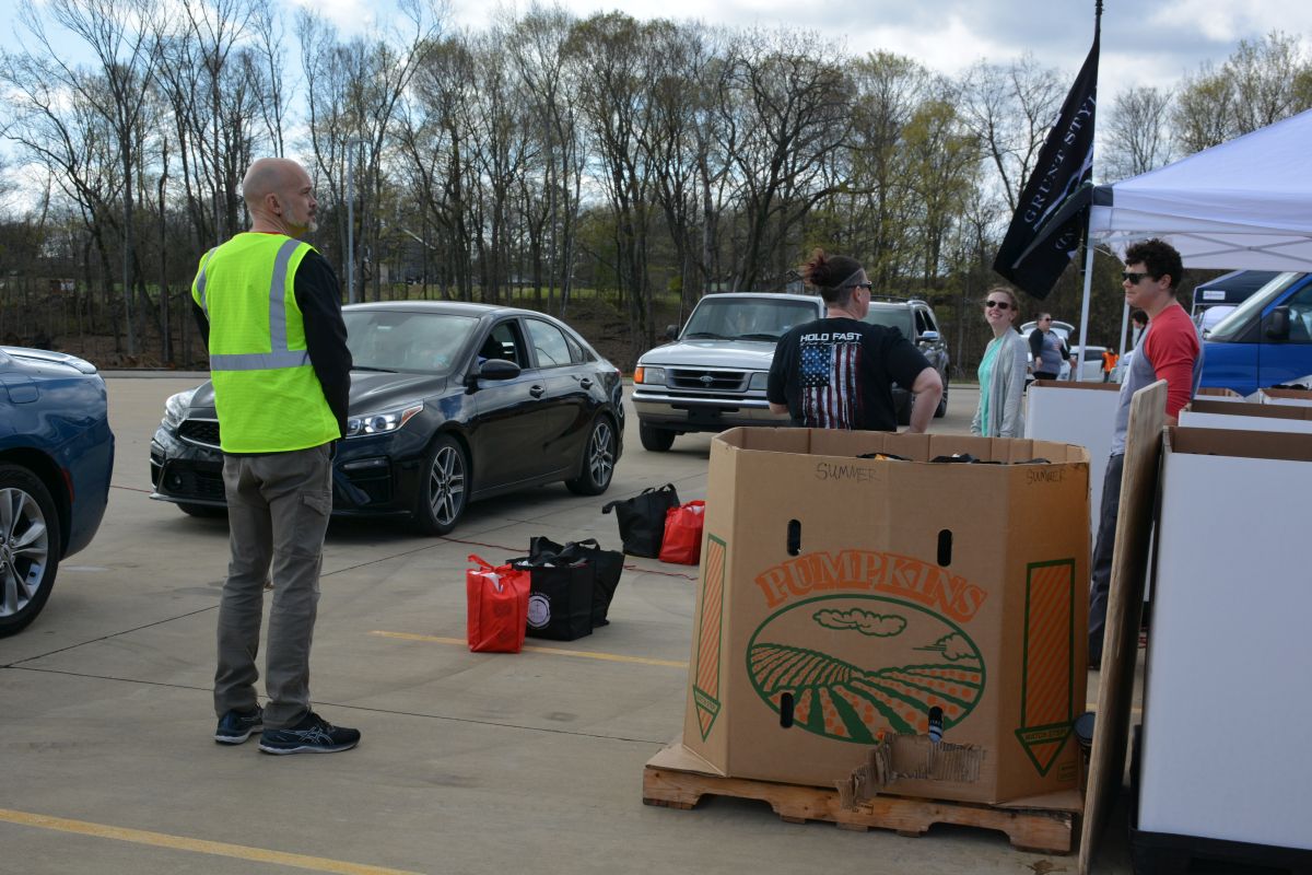 Tim Jensen, president of the Grunt Style Foundation, said 38,000 pounds of free food and commodities were being handed out during the drive-thru food distribution to help close to 500 families and veterans from Fort Campbell and the surrounding areas.