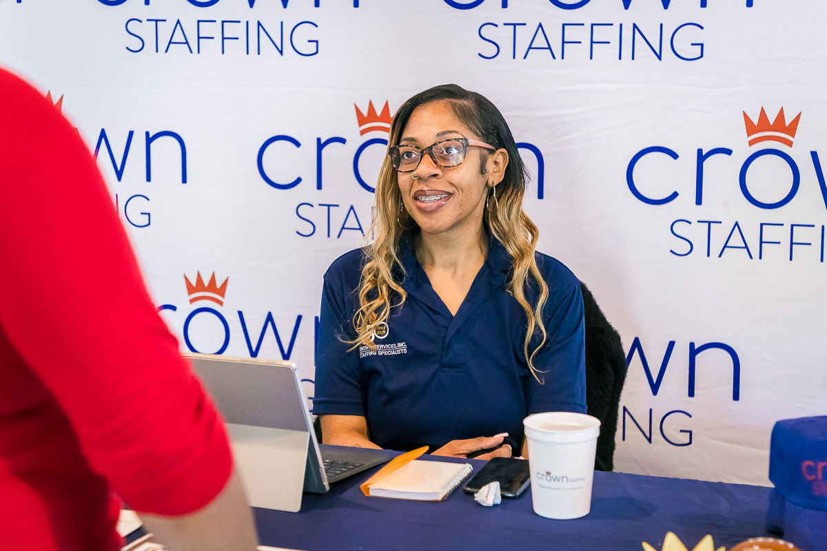 Crown Staffing at the 8th Mega Job Fair at the Wilma Rudolph Event Center on April 6, 2025. (Wesley Irvin)