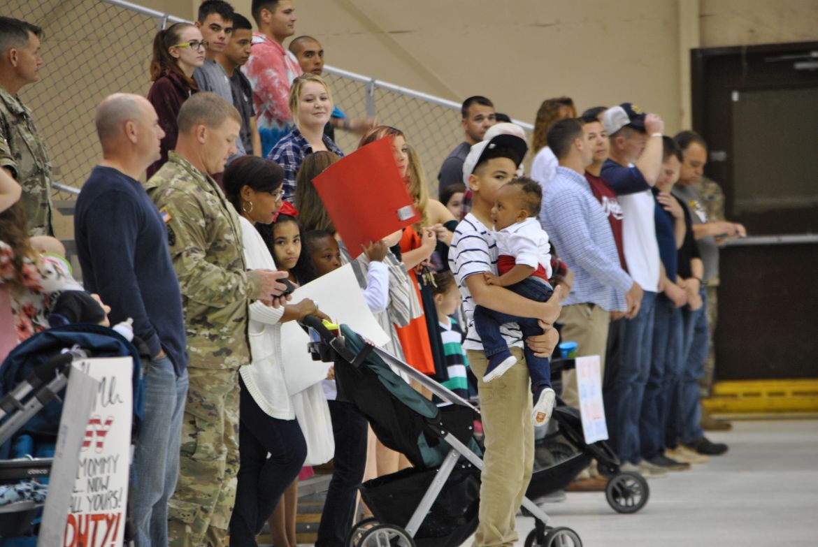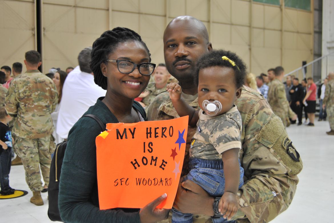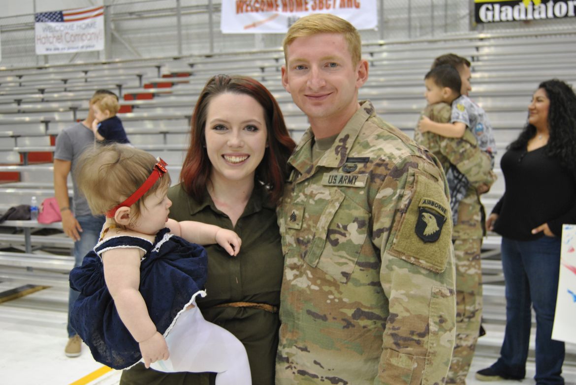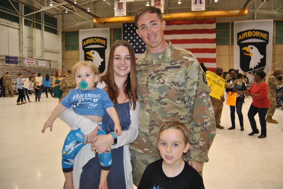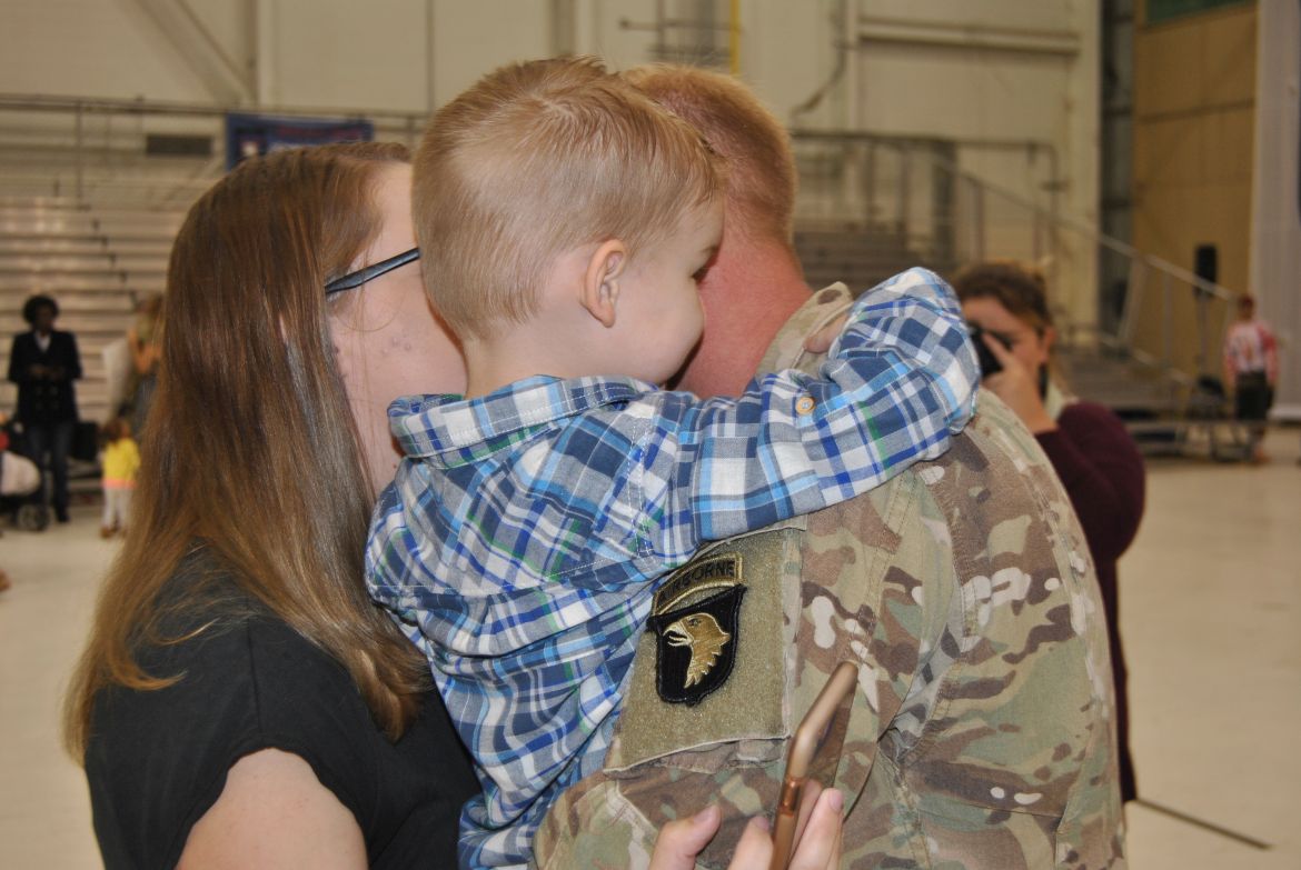 FORT CAMPBELL, Ky. – (CLARKSVILLENOW) There were a lot of smiles, hugs, kisses and handshakes Tuesday evening as 60 soldiers with the 1st Brigade Combat Team (BCT) were welcomed back to Fort Campbell after their six-month deployment to Cameroon in Africa. The soldiers were assigned to the 1st Battalion, 506th Infantry Regiment, 1st BCT of the 101st Airborne Division (Air Assault).