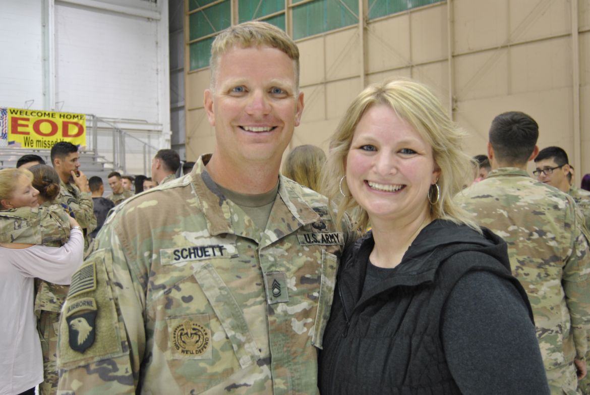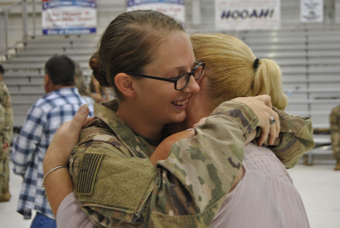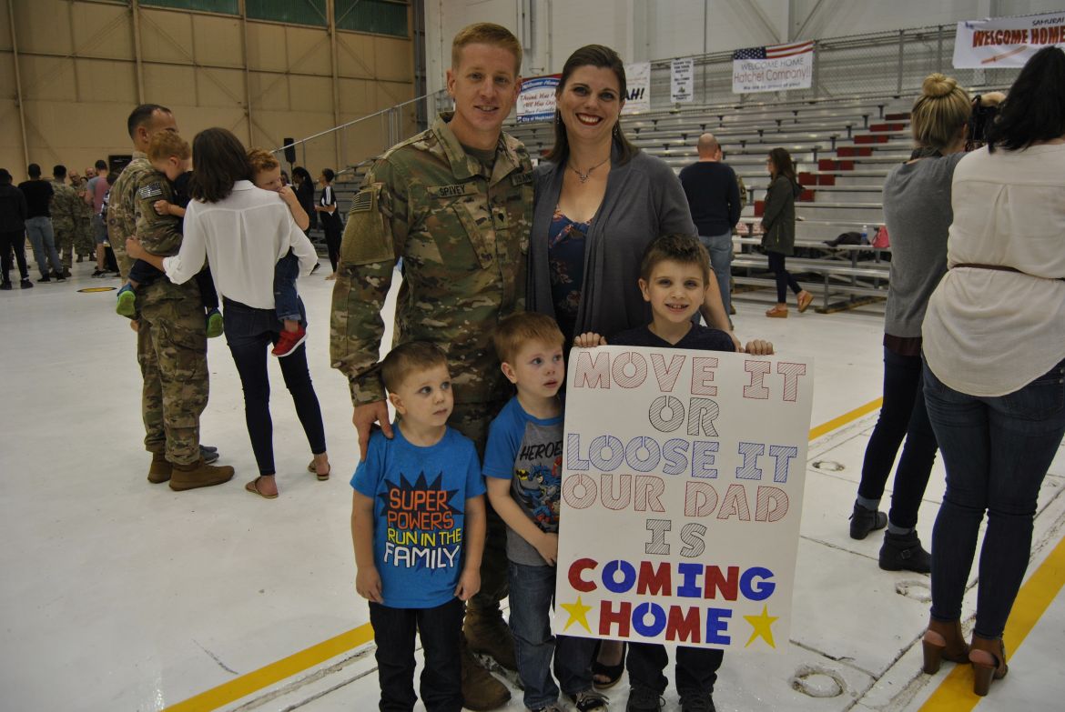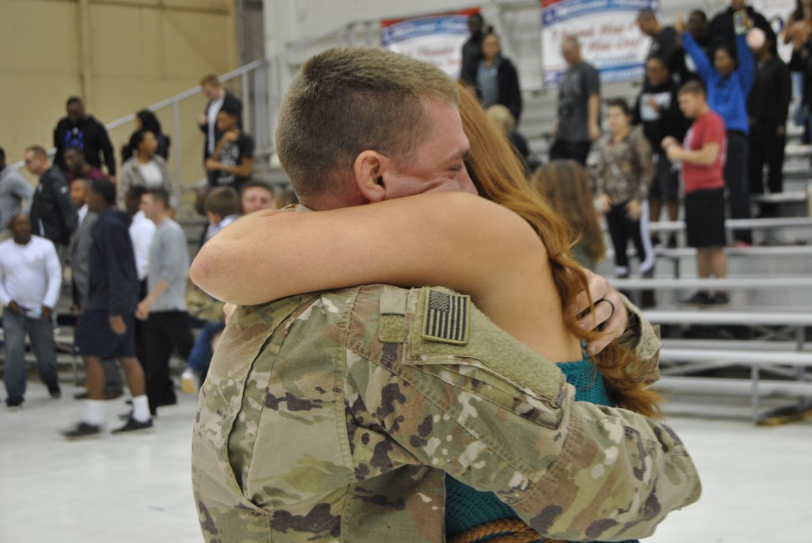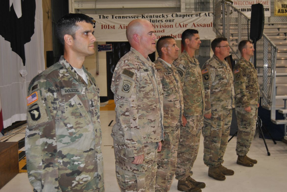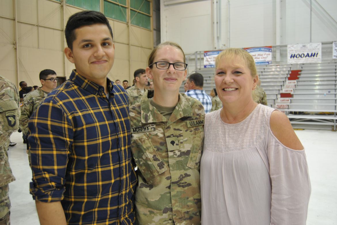 FORT CAMPBELL, Ky. – (CLARKSVILLENOW) There were a lot of smiles, hugs, kisses and handshakes Tuesday evening as 60 soldiers with the 1st Brigade Combat Team (BCT) were welcomed back to Fort Campbell after their six-month deployment to Cameroon in Africa. The soldiers were assigned to the 1st Battalion, 506th Infantry Regiment, 1st BCT of the 101st Airborne Division (Air Assault).