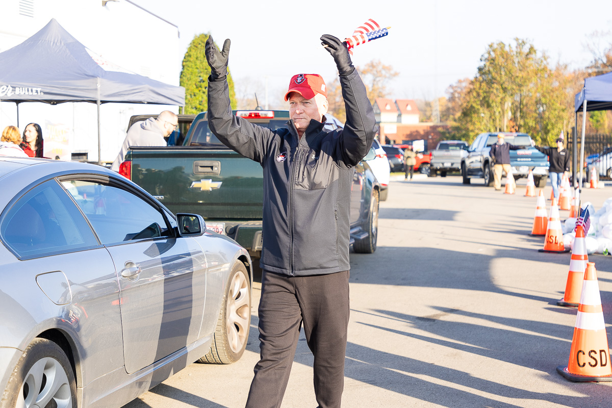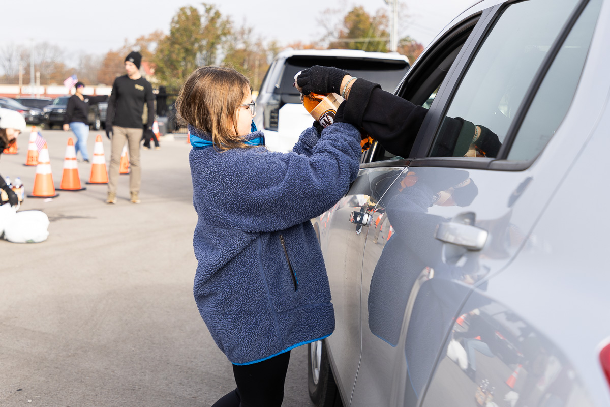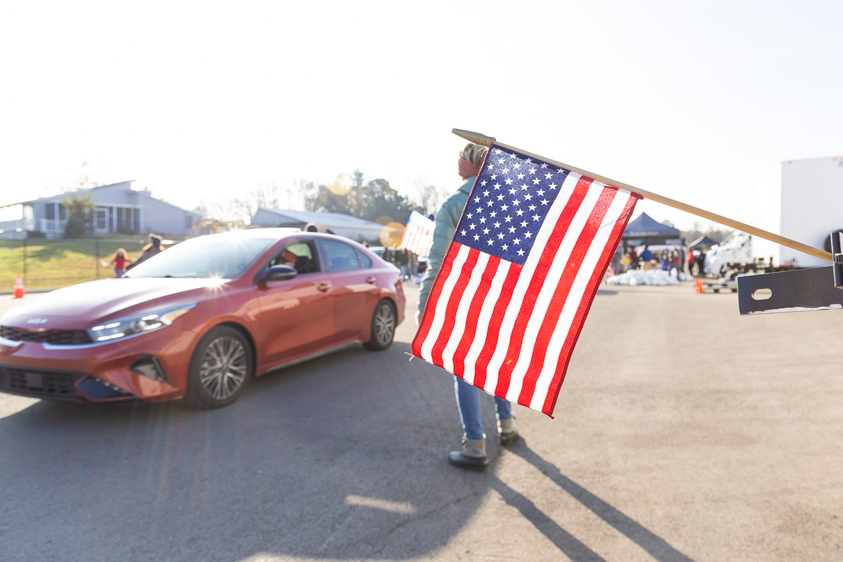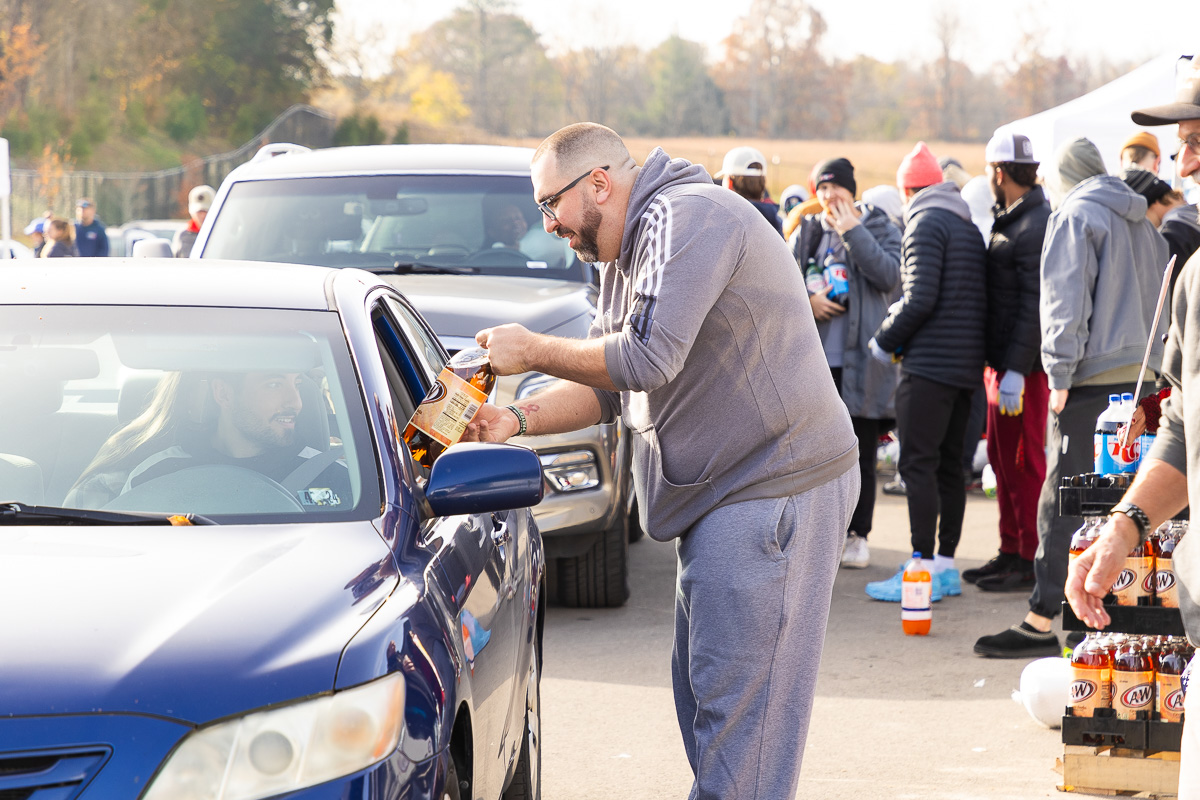 The event, which started at 8 a.m., had a steady line of vehicles of active-duty service members, veterans and their families. Volunteers included members of Austin Peay State University’s baseball and softball teams, as well as on-air personalities from Beaver 100.3 and Q108.